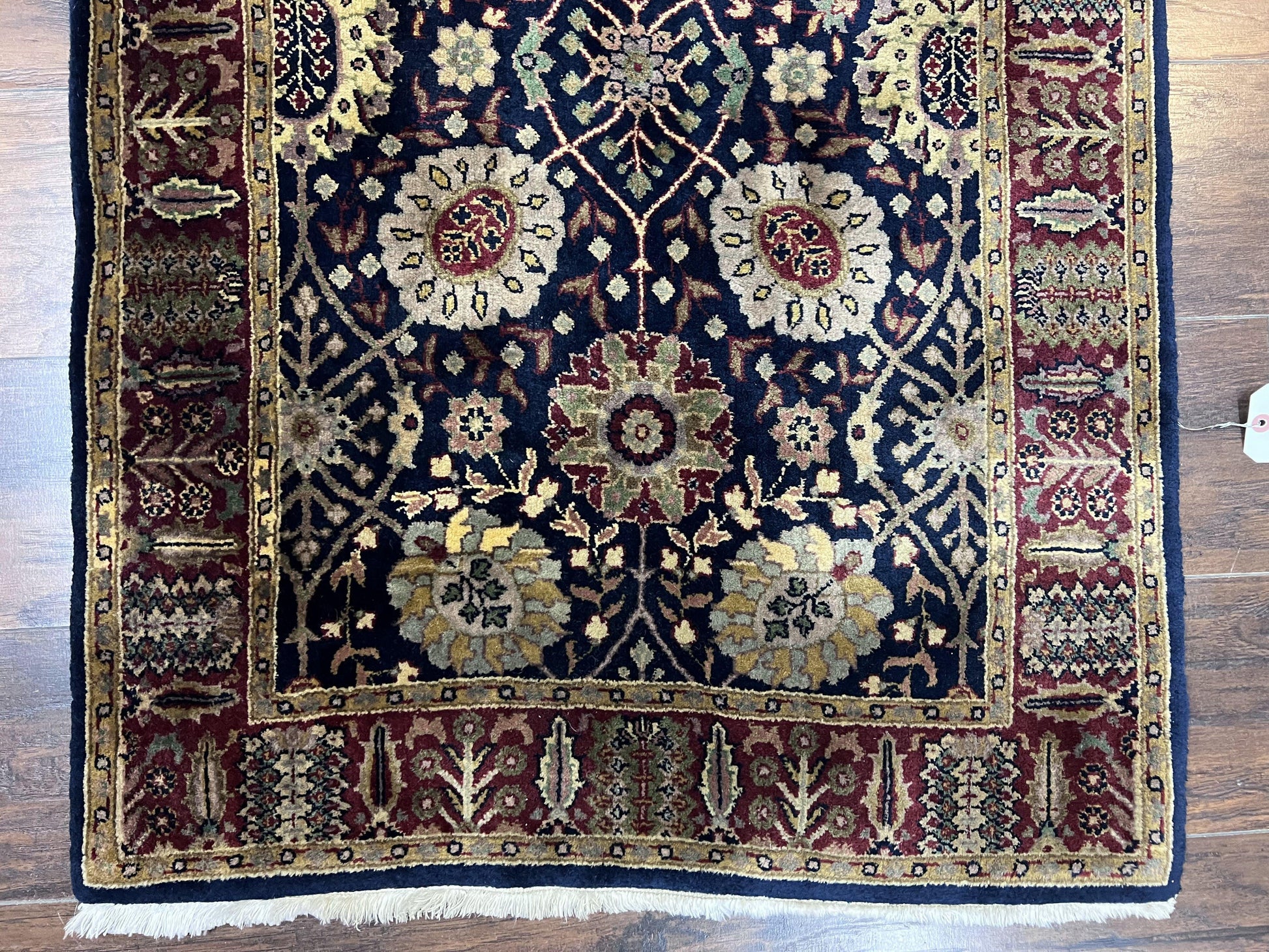 Indo Persian Wool Runner 2.8 x 18 Hand Knotted Vintage Floral Hallway Rug In Dark Blue Burgundy