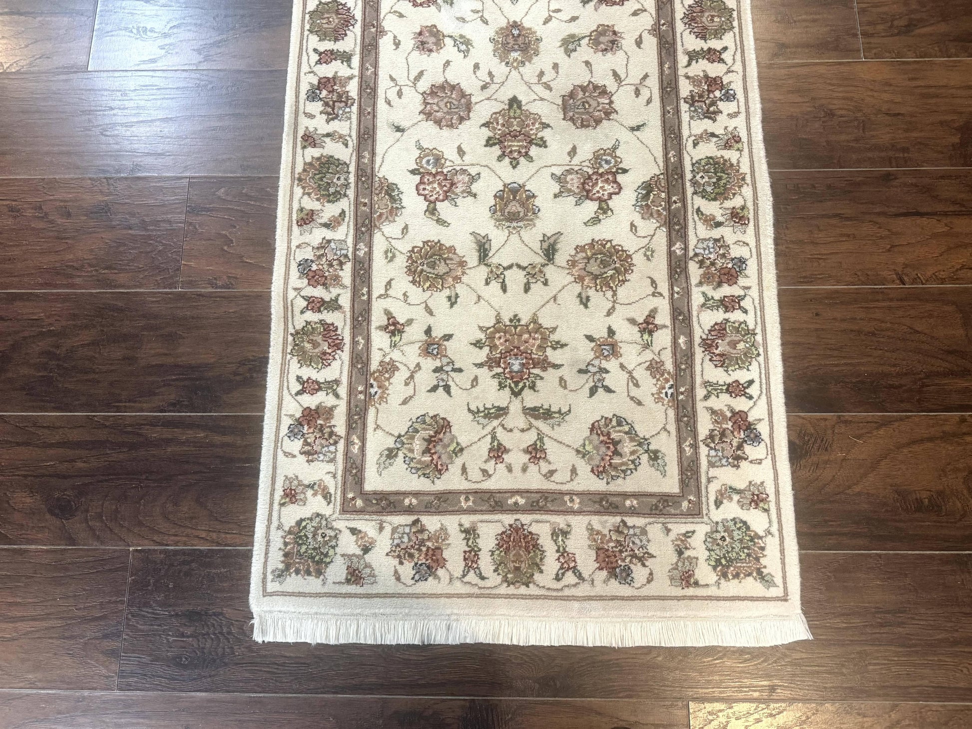 The hand-knotted wool foundation provides durable everyday use, while subtle silk highlights catch the light for a refined, understated sheen. The ivory palette blends with a wide range of décors, making it a versatile accent for hallways or kitchens. With its traditional Persian design, this rug adds a sense of craftsmanship and heritage to your space, transforming a functional area into a warm, inviting passage.