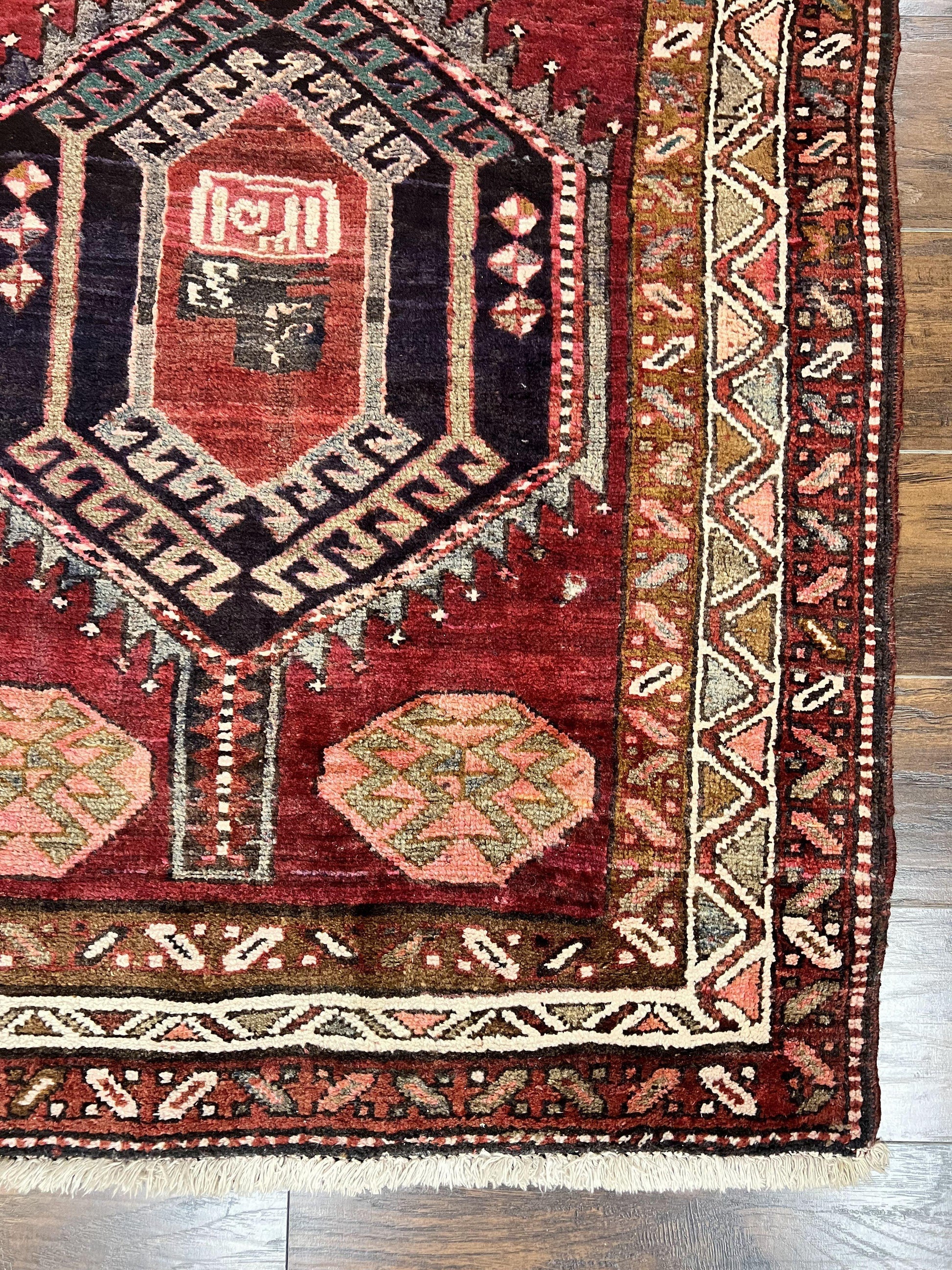 Persian Heriz Runner Rug 3.8 By 8.6 Hand Knotted Wool Geometric Triple Medallions Hallway Decor