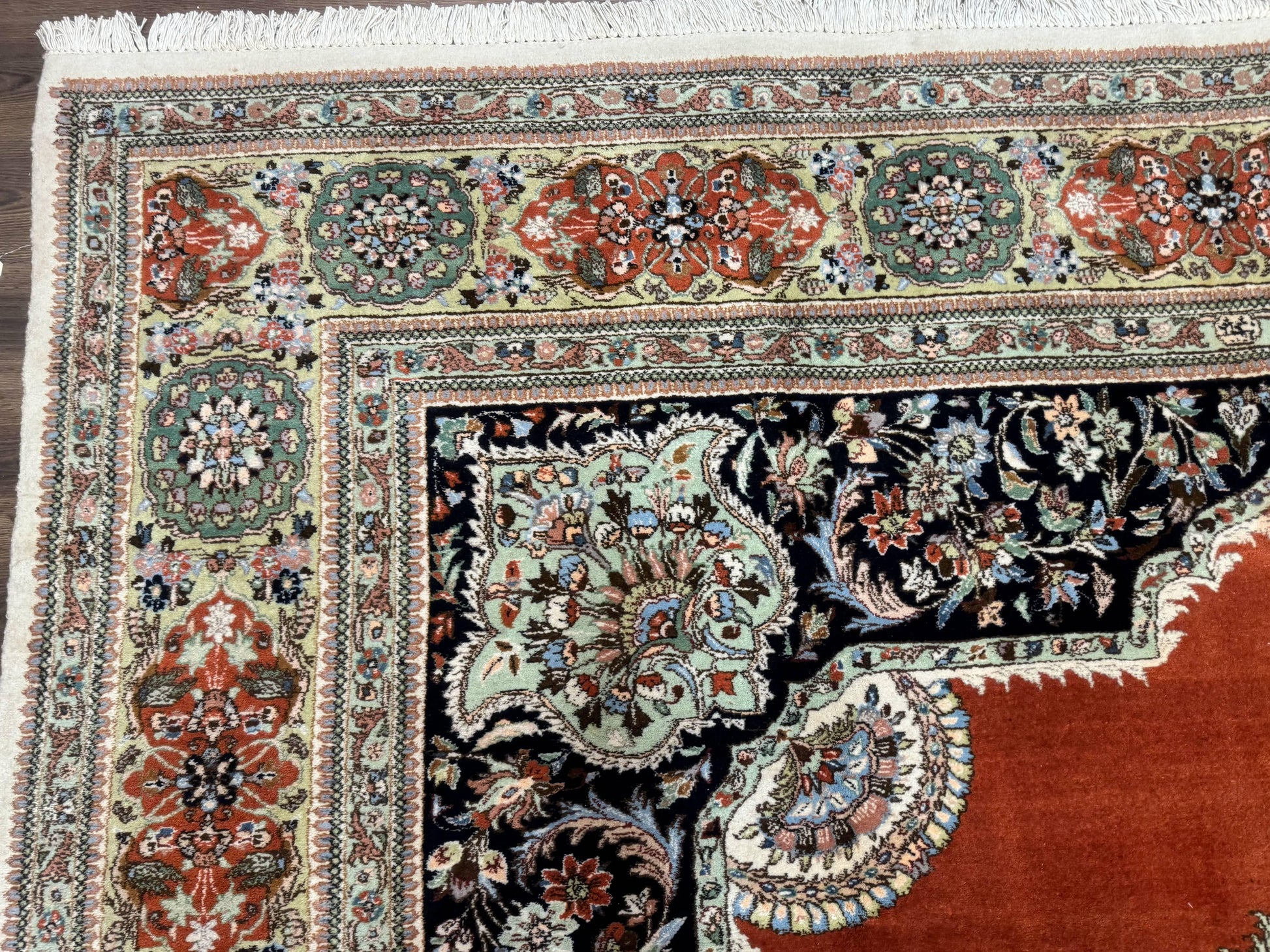 - Origin & Craft: Persian Tabriz, hand-knotted wool