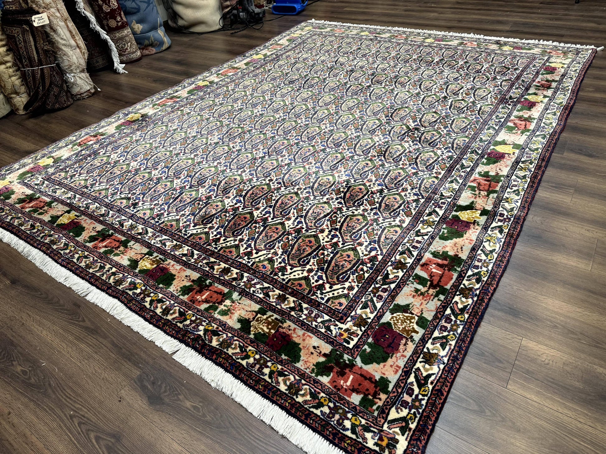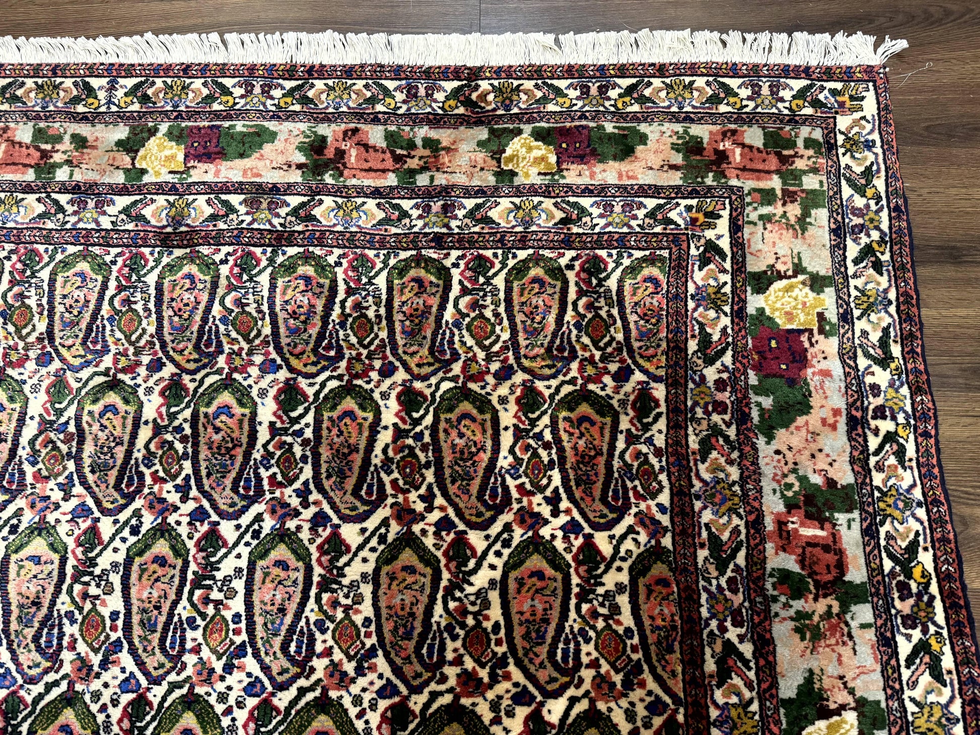 Persian Kurdish Rug 8x11 Boteh Design With Repeated Paisleys And Bird Pictorials Sannadaji Carpet
