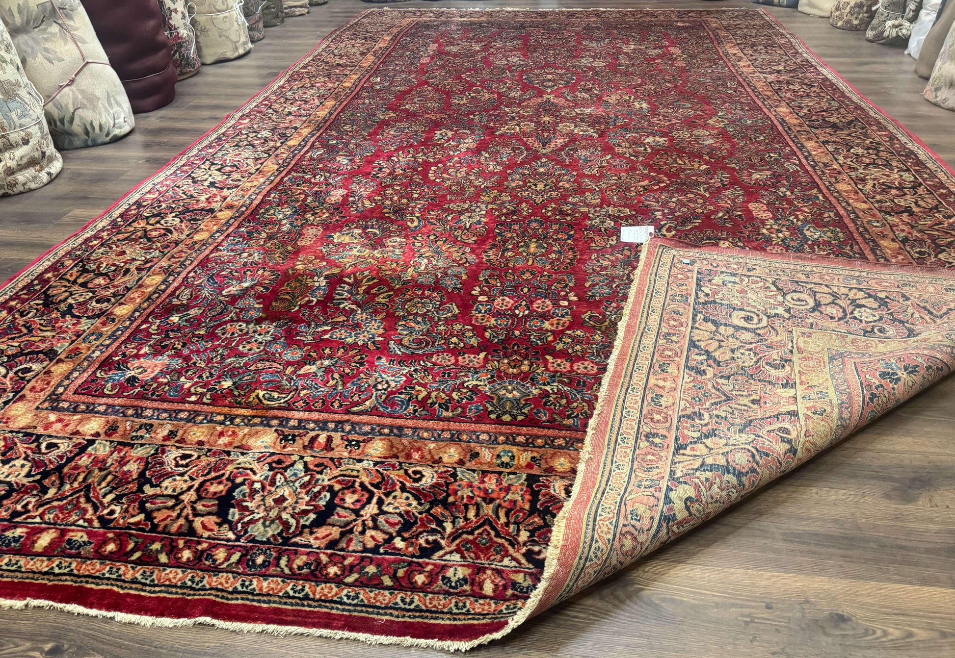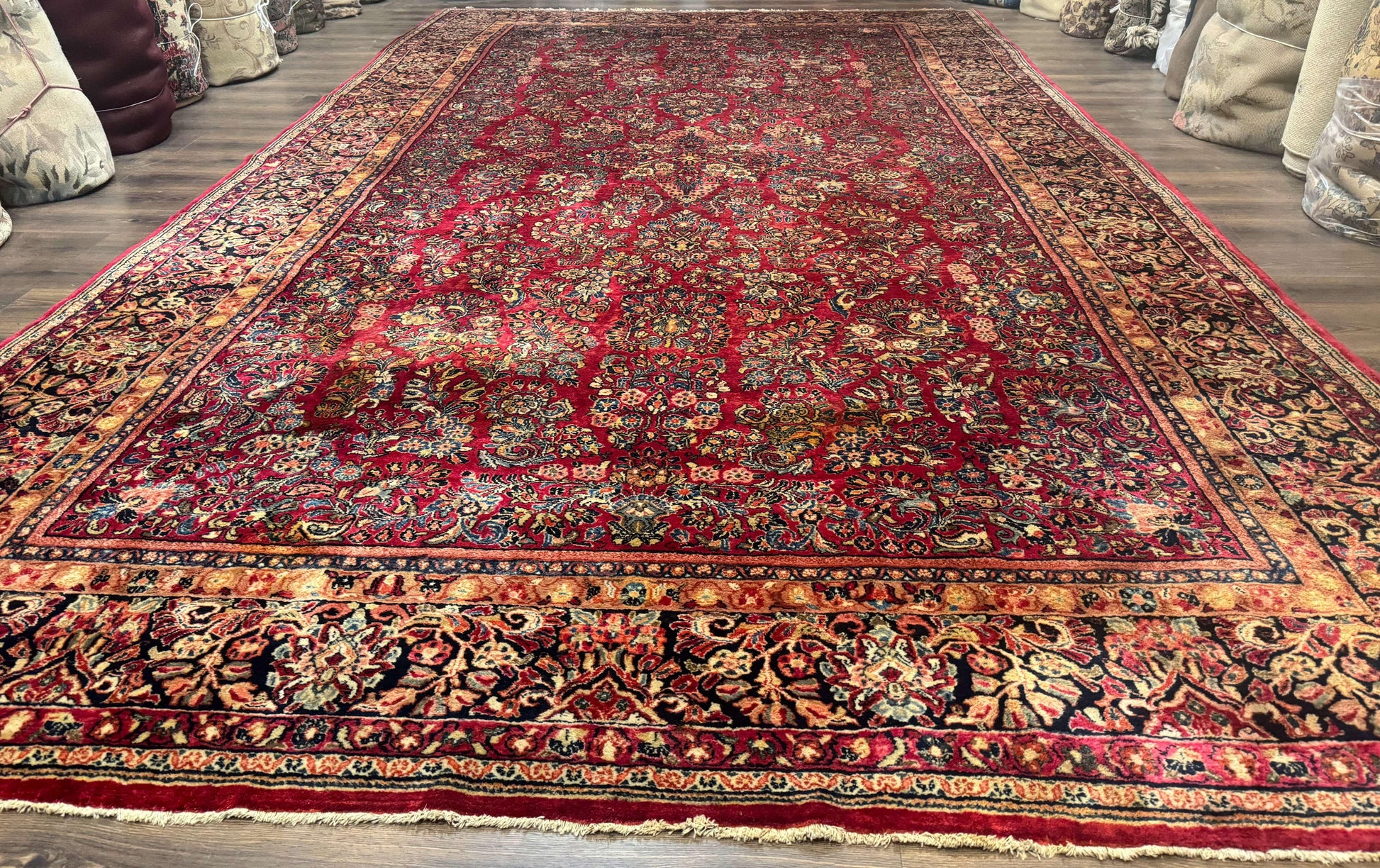 Persian Sarouk Rug 10x18 Extra Large Antique Wool Carpet Red Floral Handmade
