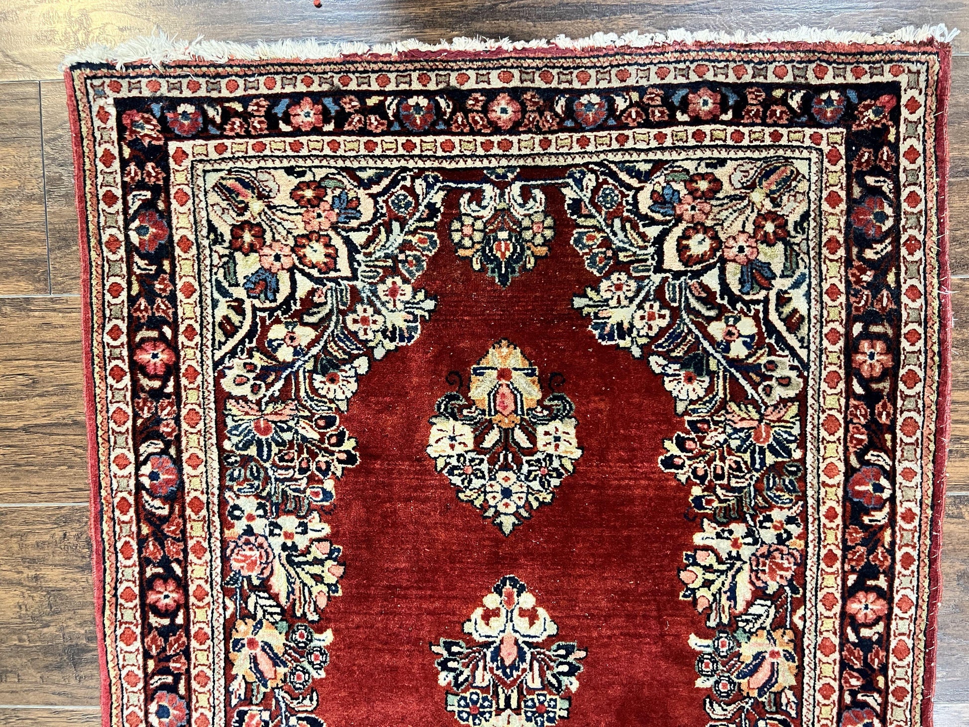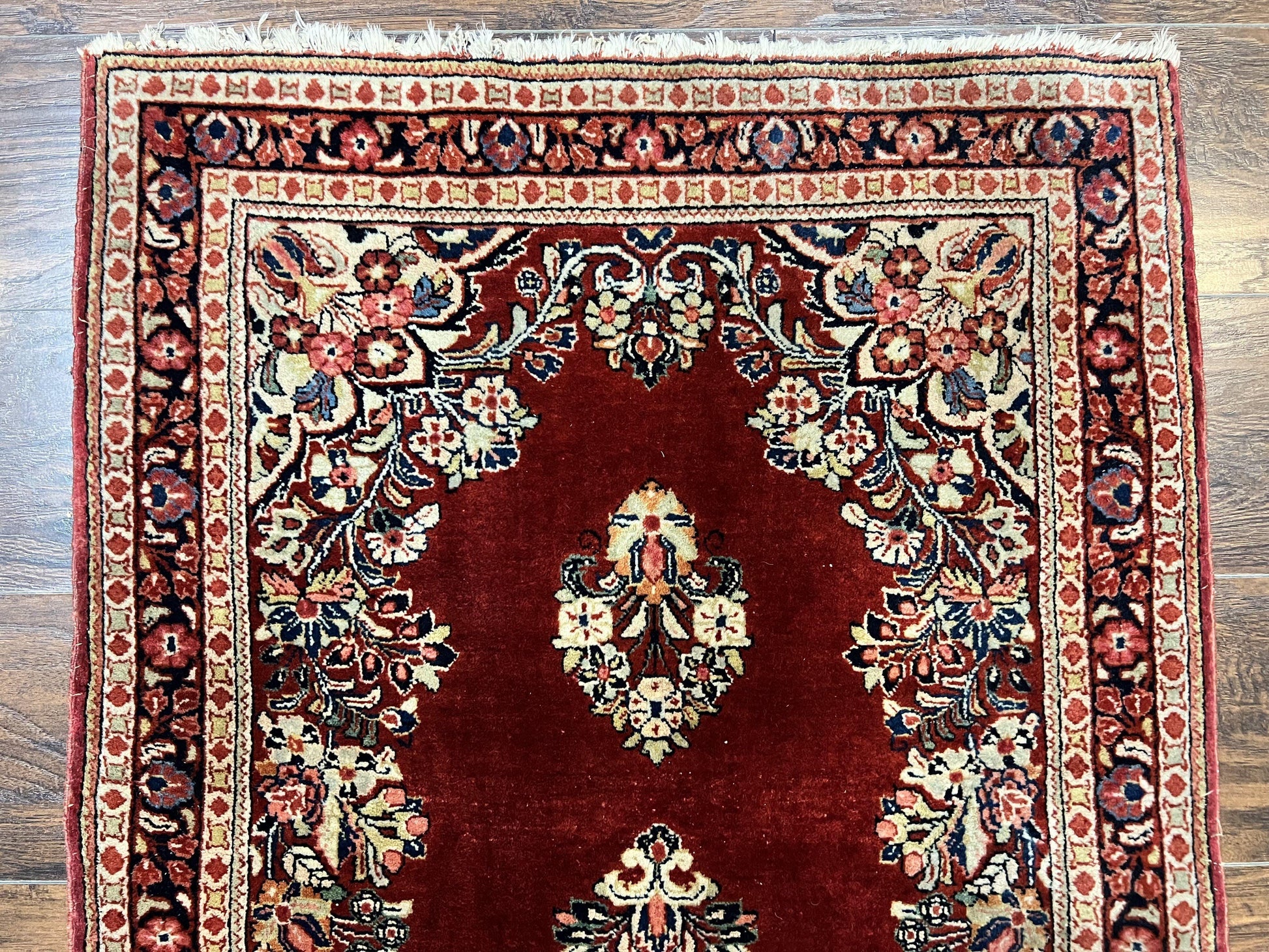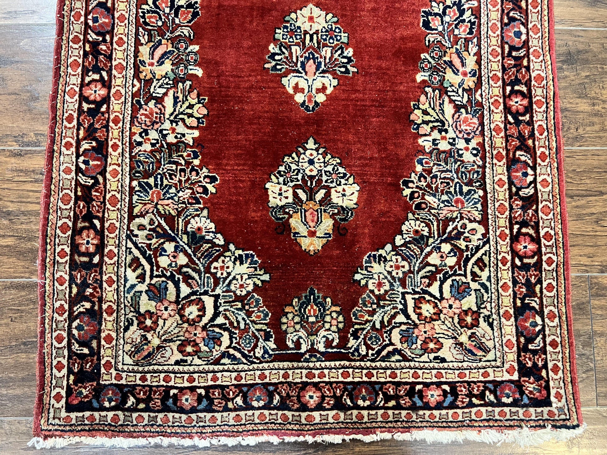 Persian Sarouk Runner Rug Handmade Wool Two Point Seven By Six Red Vintage Semi Antique