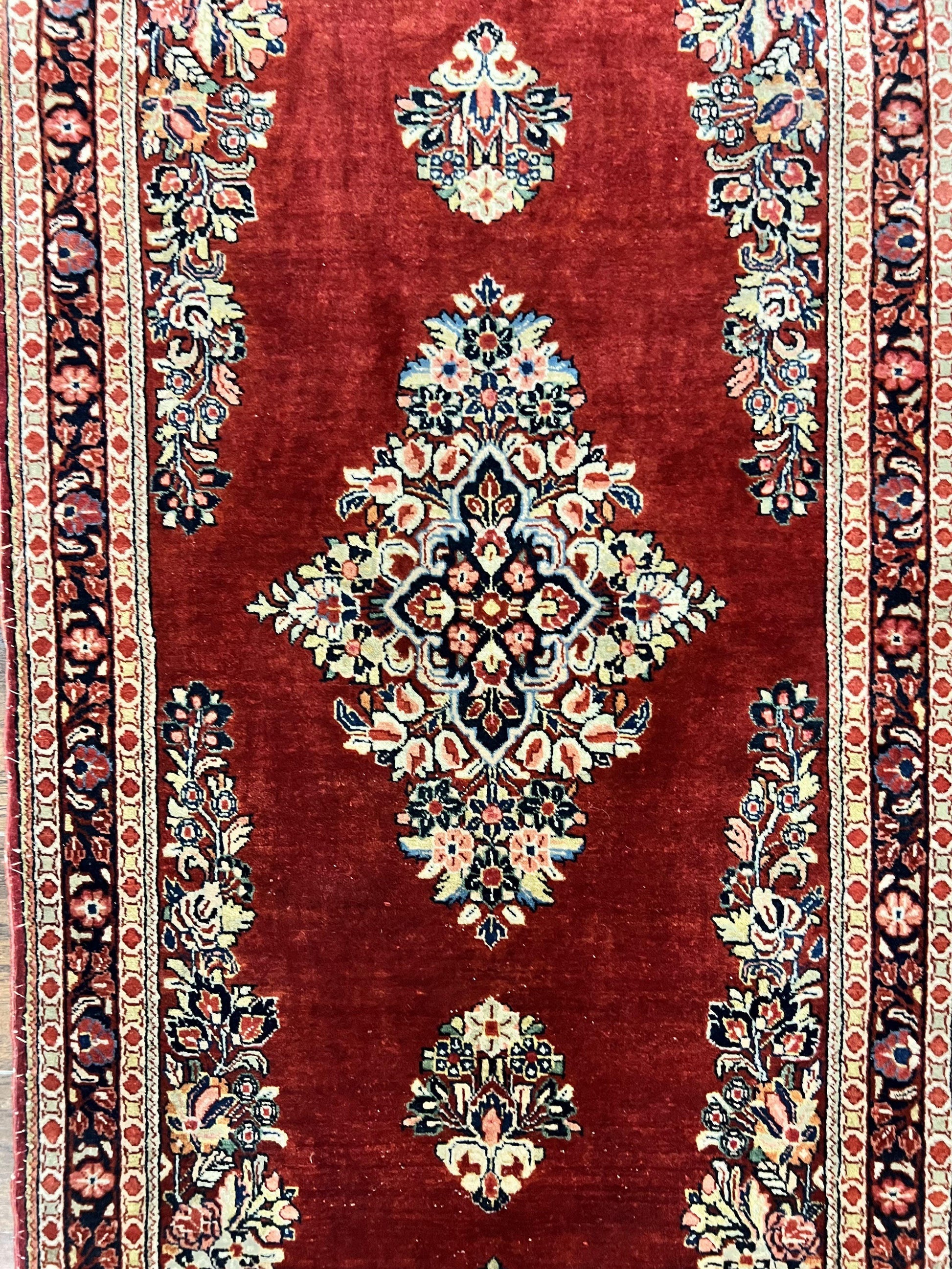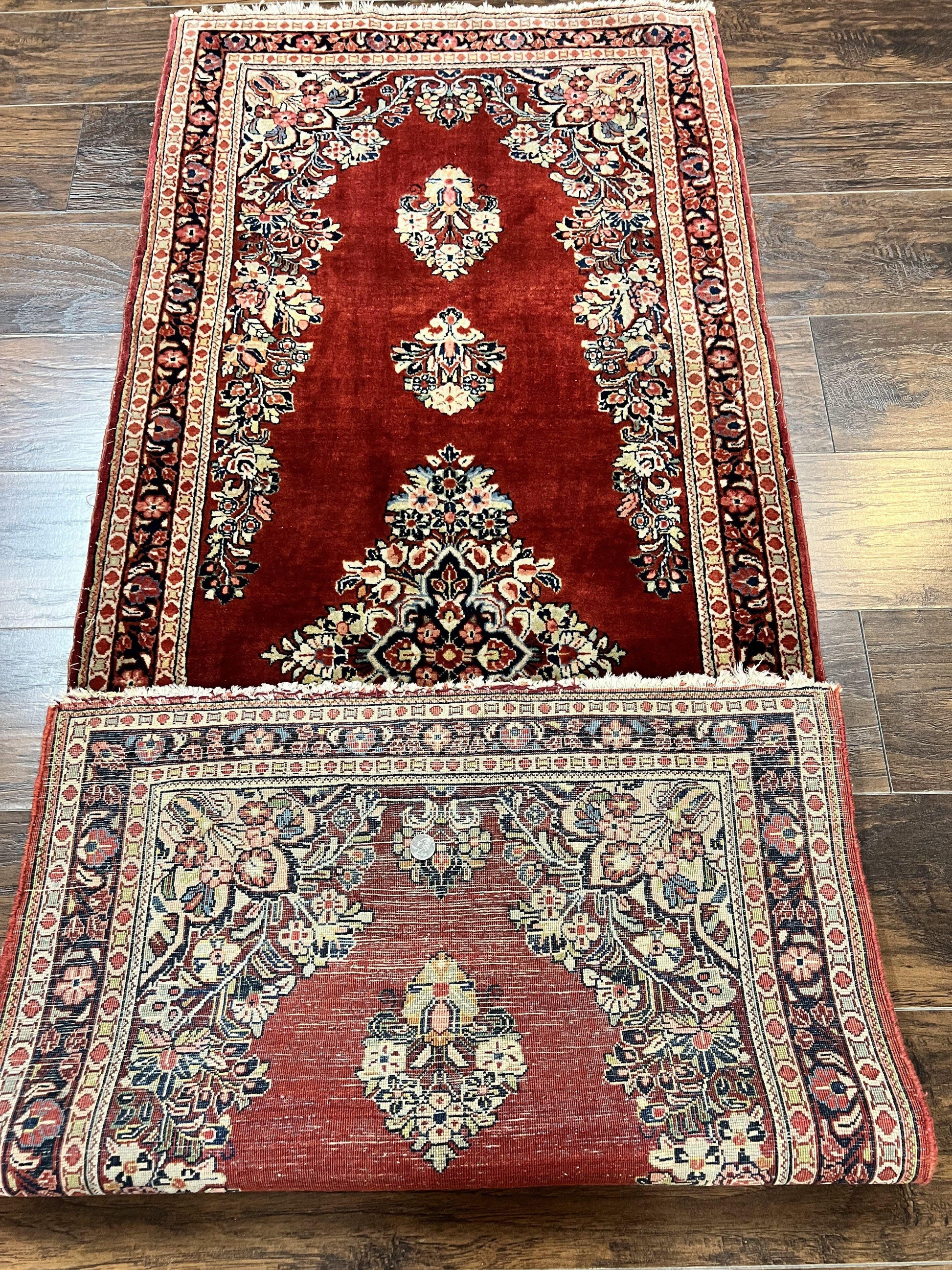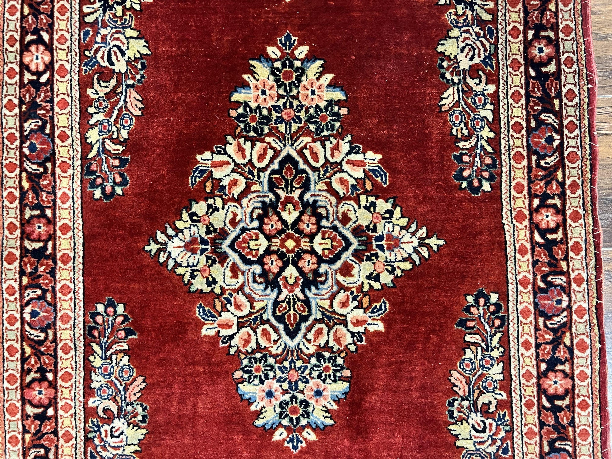 Persian Sarouk Runner Rug Handmade Wool Two Point Seven By Six Red Vintage Semi Antique