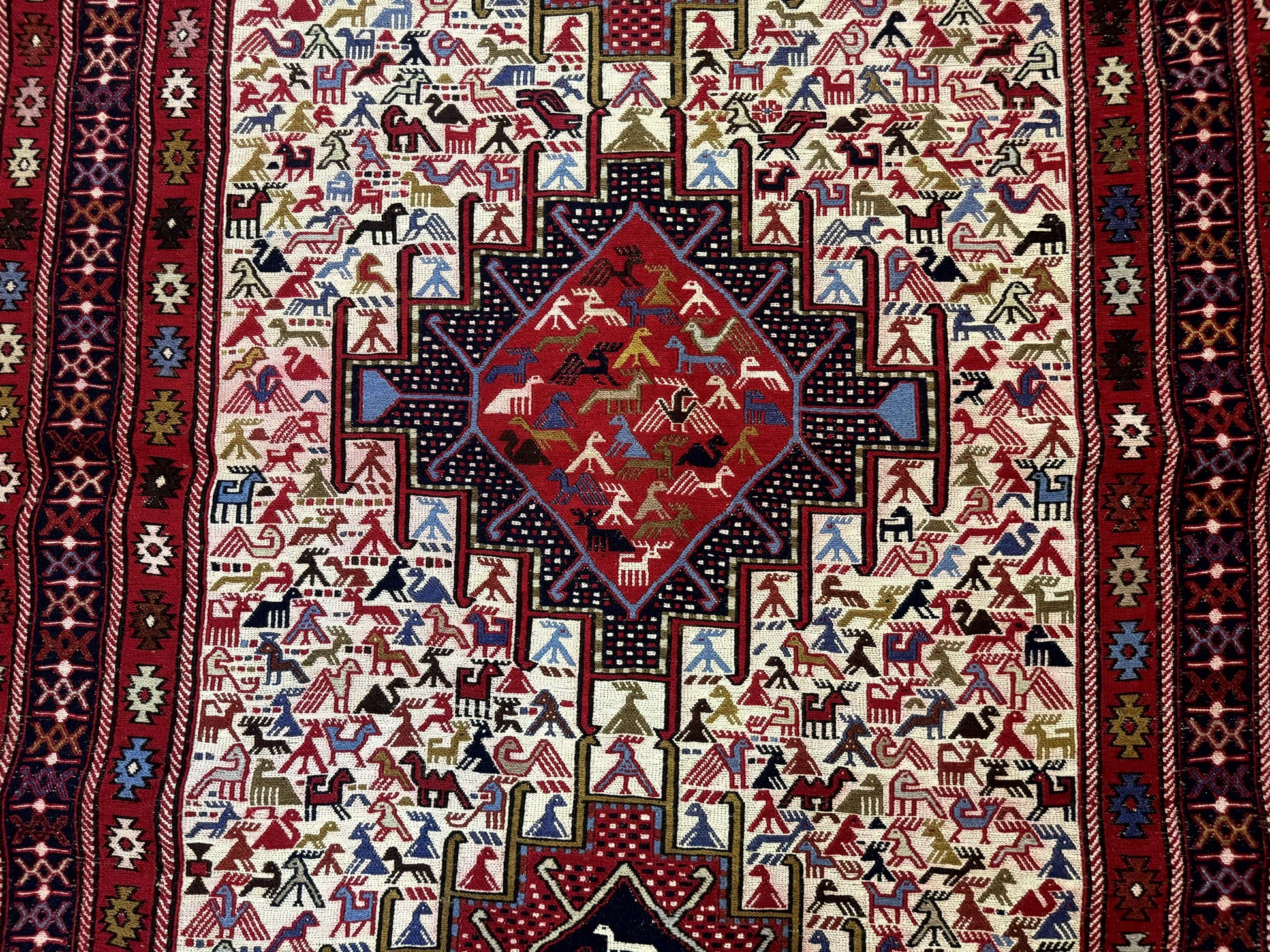 Persian Soumak Kilim Rug 4x6 Triple Medallions Tribal Pictorials Caucasian Kilim