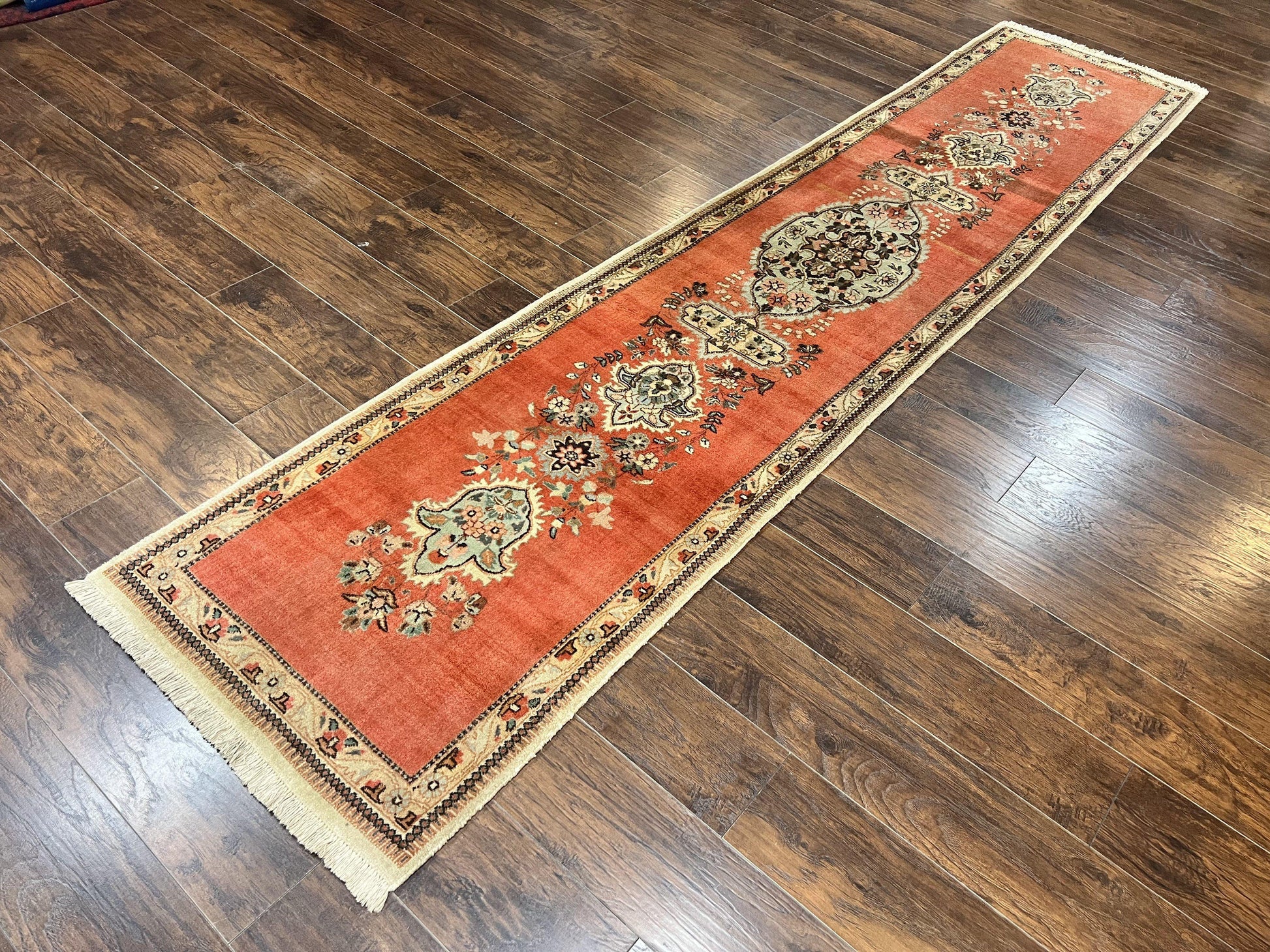 The Persian Tabriz Runner Rug is a vintage, hand-knotted wool hallway rug crafted for traditional spaces that value enduring craftsmanship. Measuring 2'9" x 12'4" in a light red and beige palette, this classic runner adds warmth and character to any corridor or open-space area.
