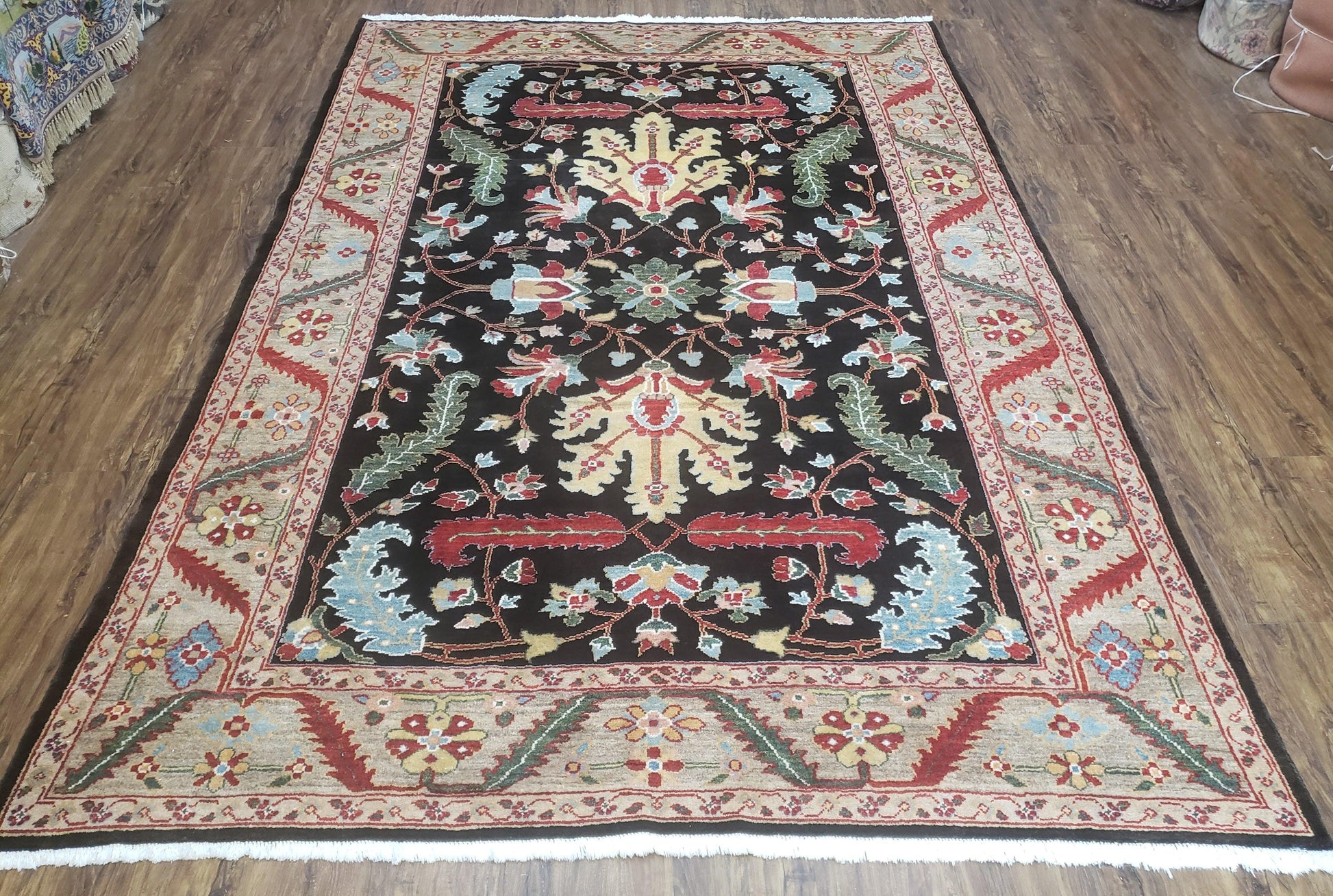 Peshawar Rug 6x9 Hand Knotted Wool Area Rug Black And Silver Oriental Carpet Handmade