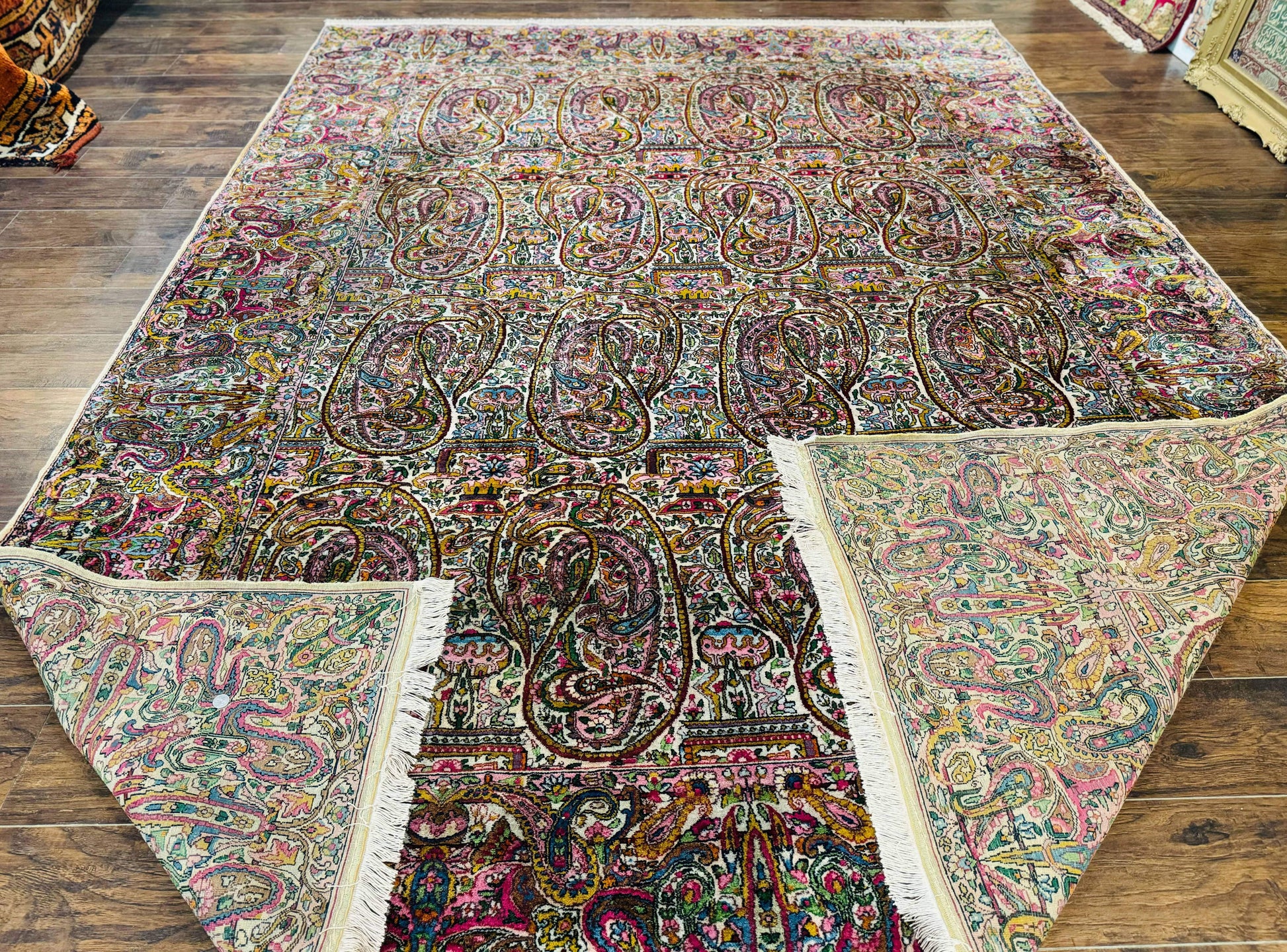 Persian Kerman Rug Lavar Antique 9x12 Rare Boteh Paisley Design Handwoven