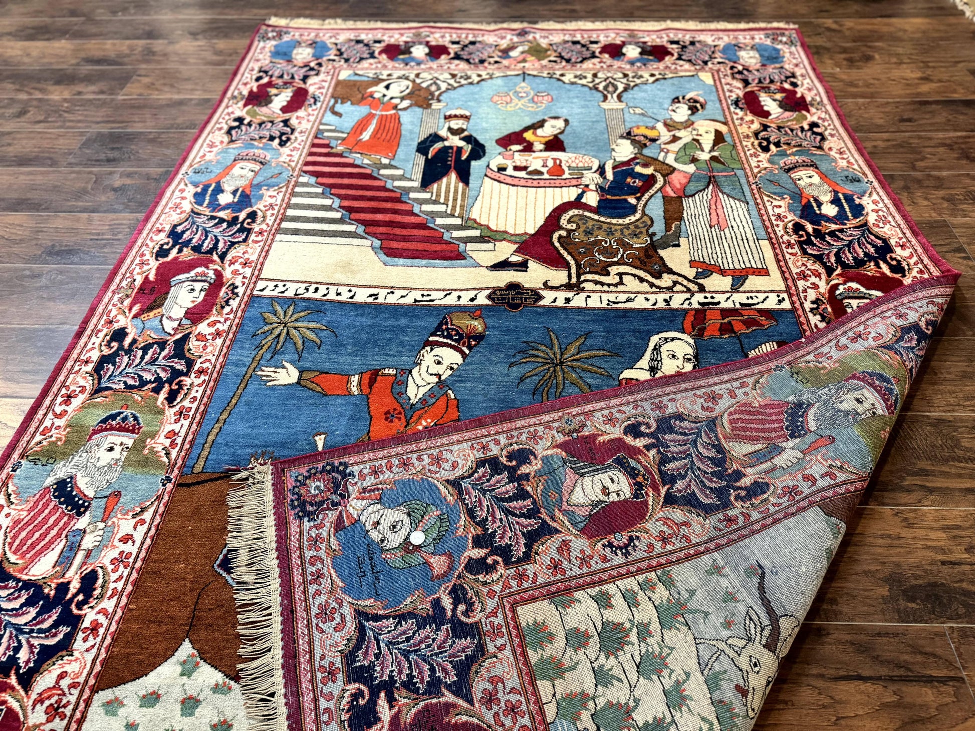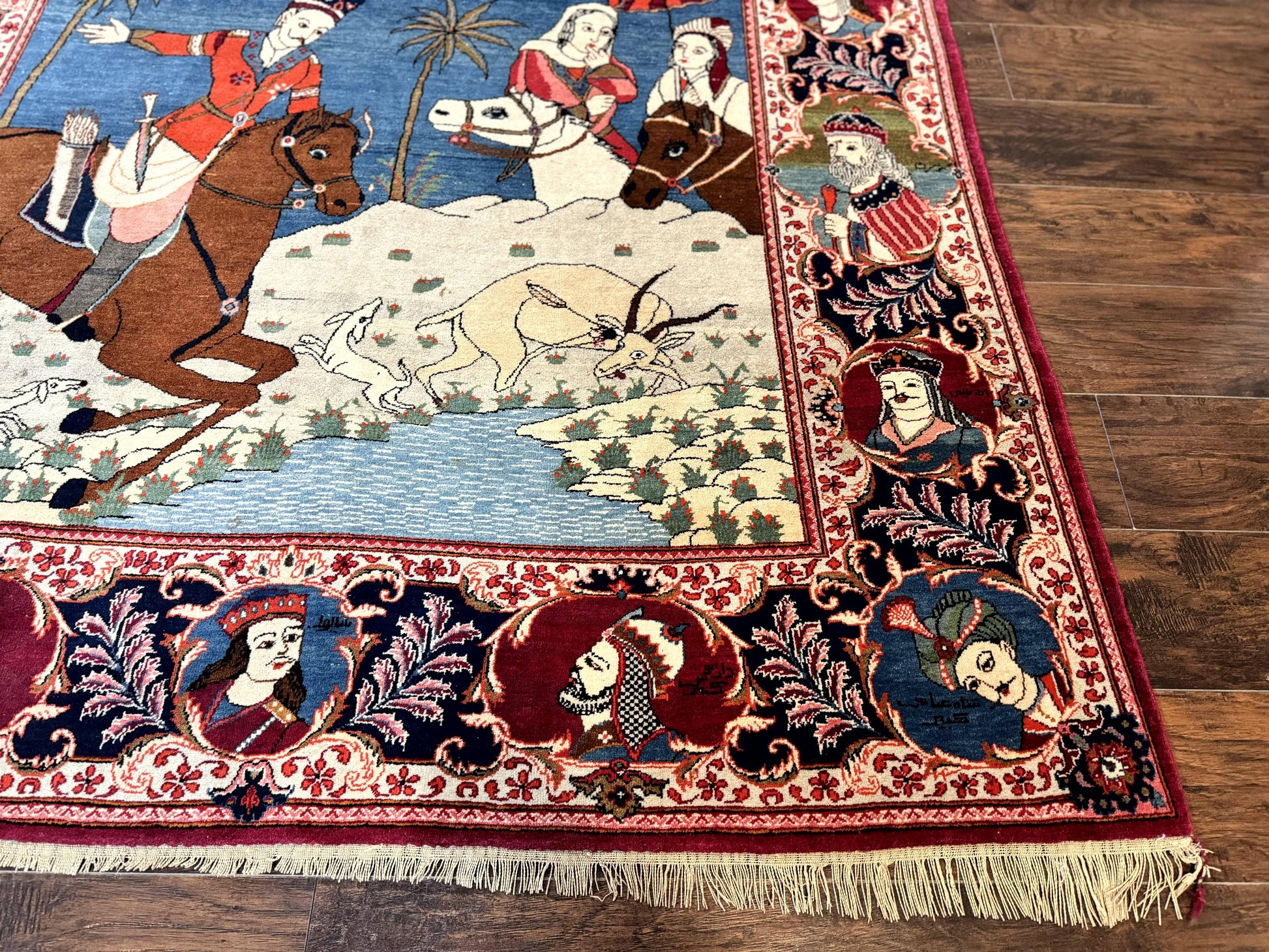 Persian Kashan Pictorial Rug 6x9 Hand Knotted Wool Wall Hanging King Bahram Hunting Scene Antique