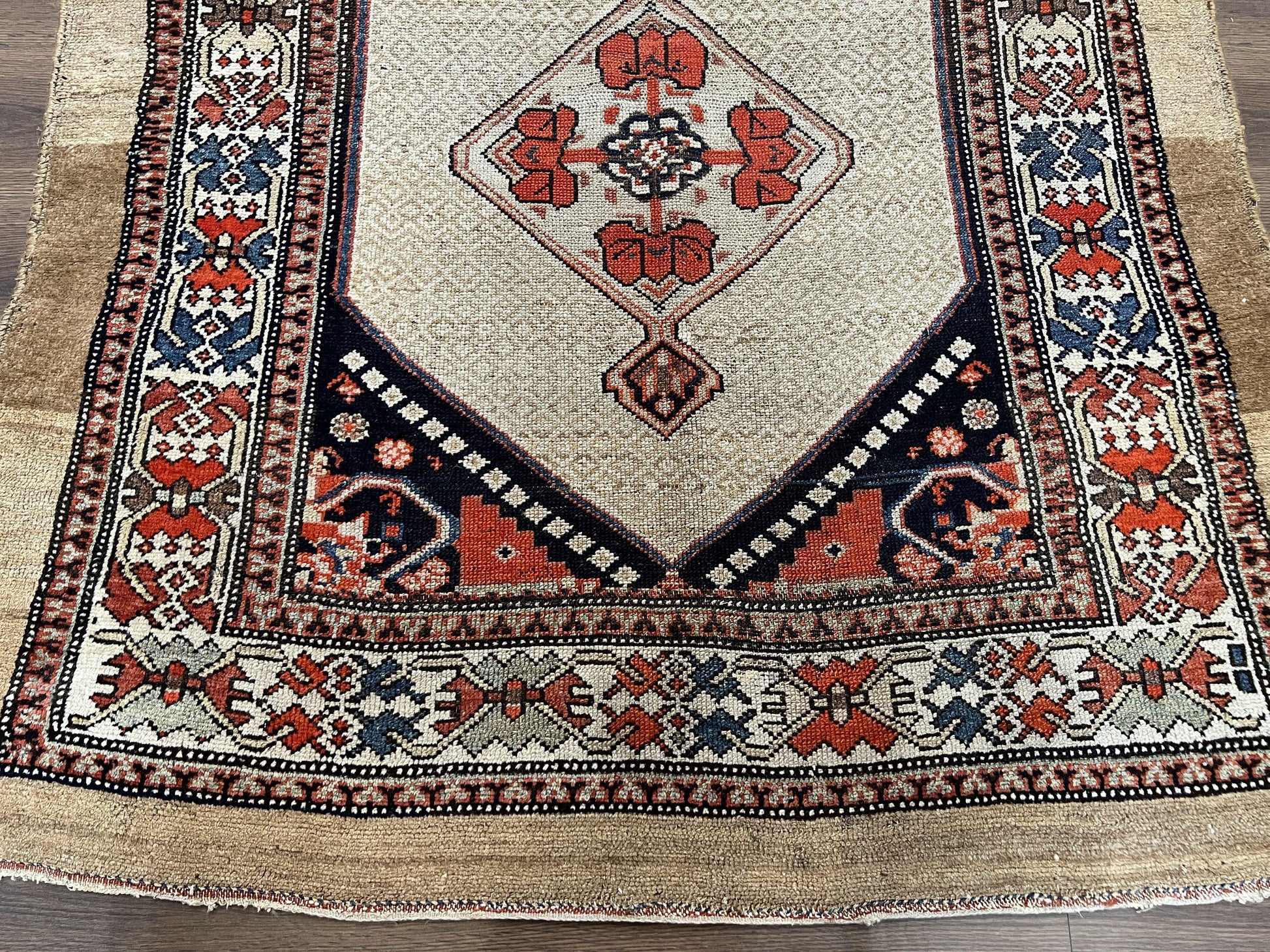 Rare Persian Sarab Tribal Runner Rug 4 By 10 Antique Geometric Medallions Camel Hair