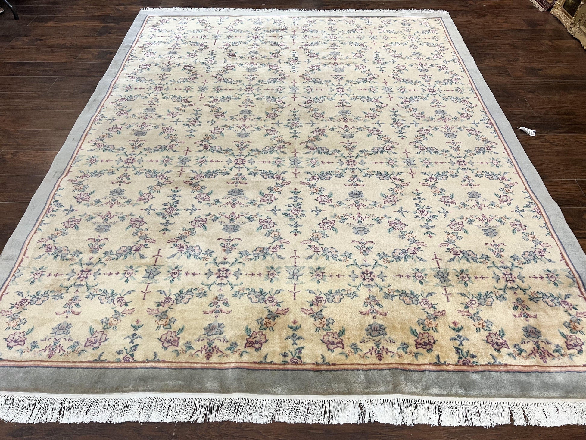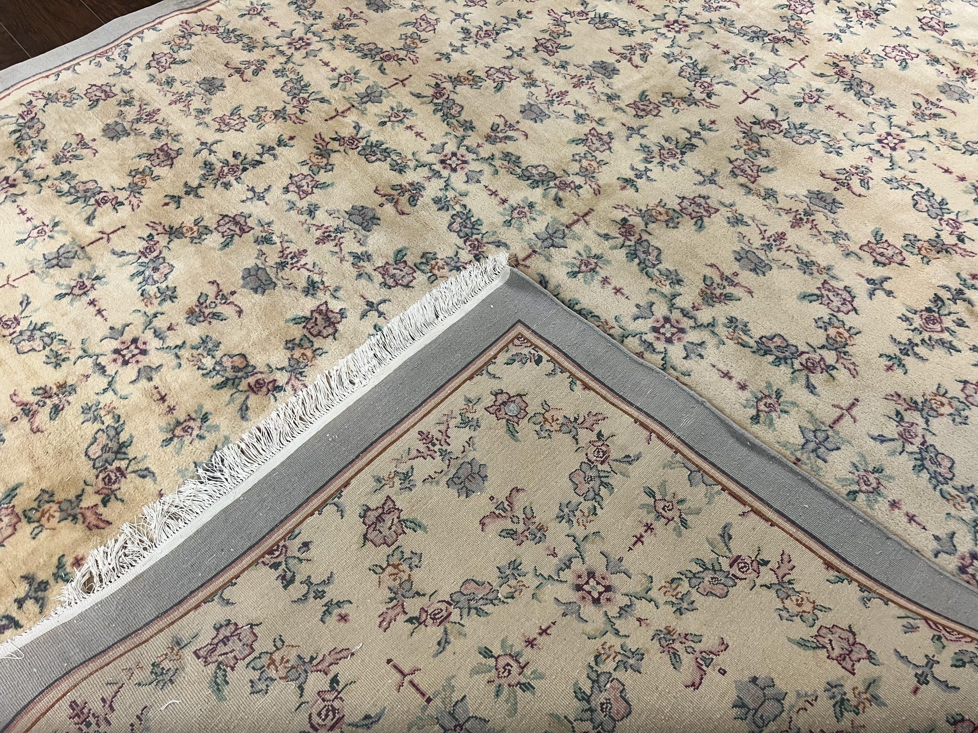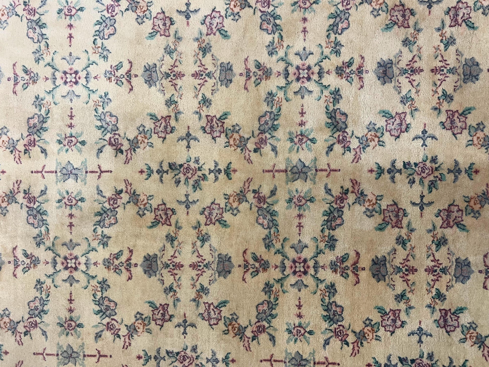 - Construction: Handmade, hand-knotted with a floral allover design
