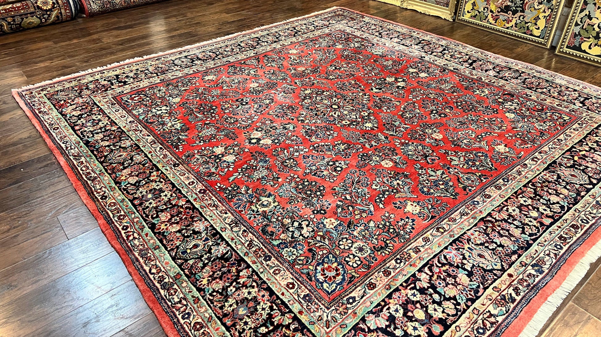 Persian Sarouk Rug Square 11x11 ft Hand Knotted Wool Floral Red Carpet Handmade Antique Rug