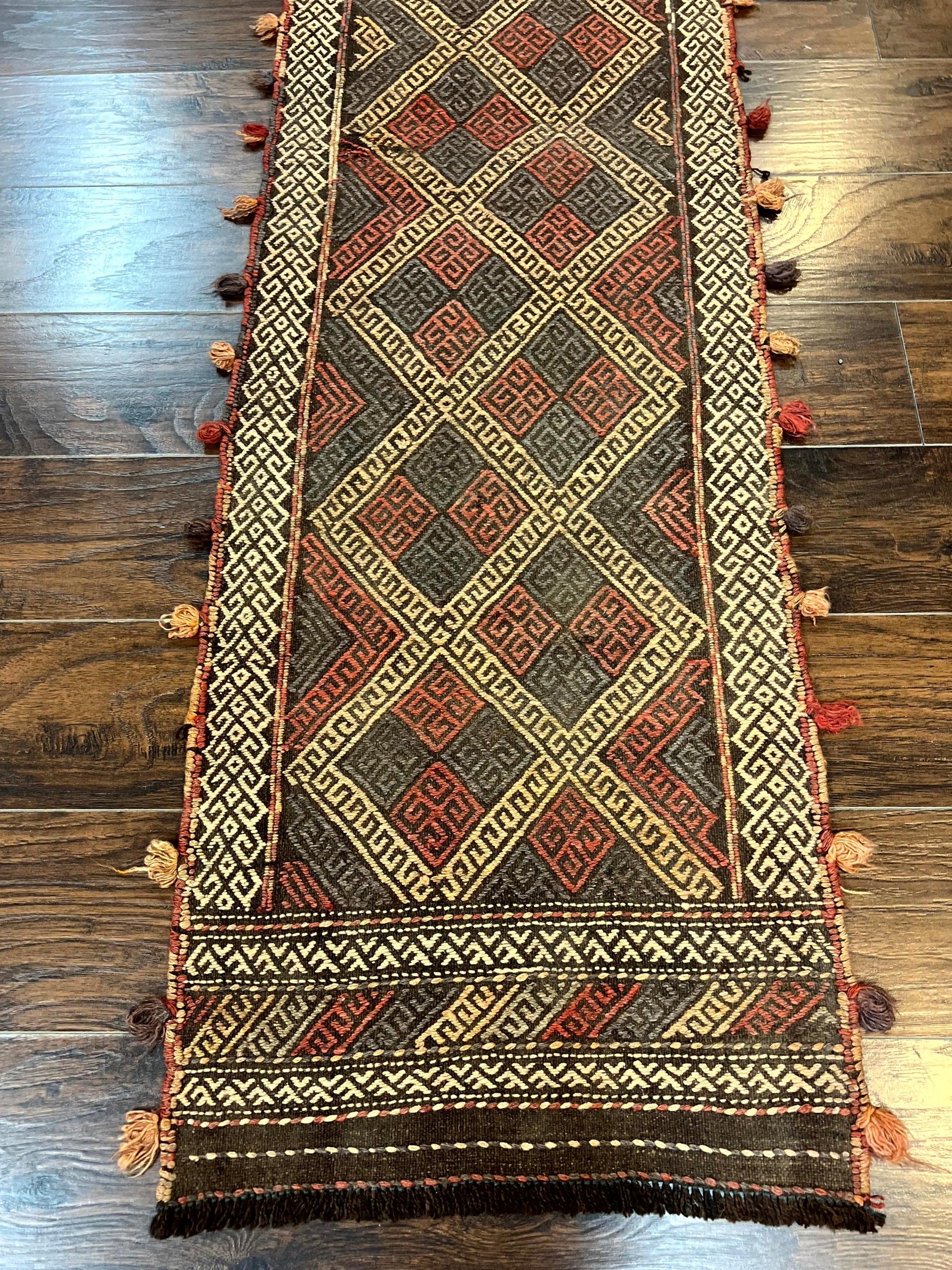 Tribal Runner Rug 2x8 Wool Handwoven Vintage Pakistani Turkoman Runner