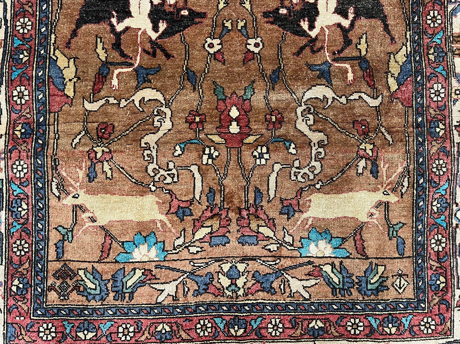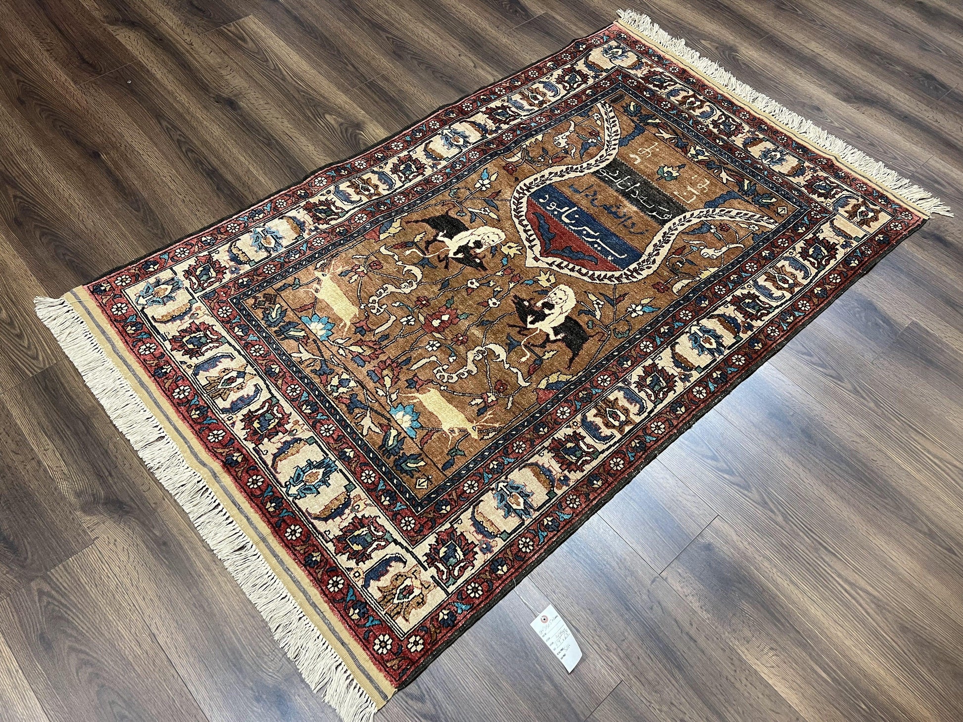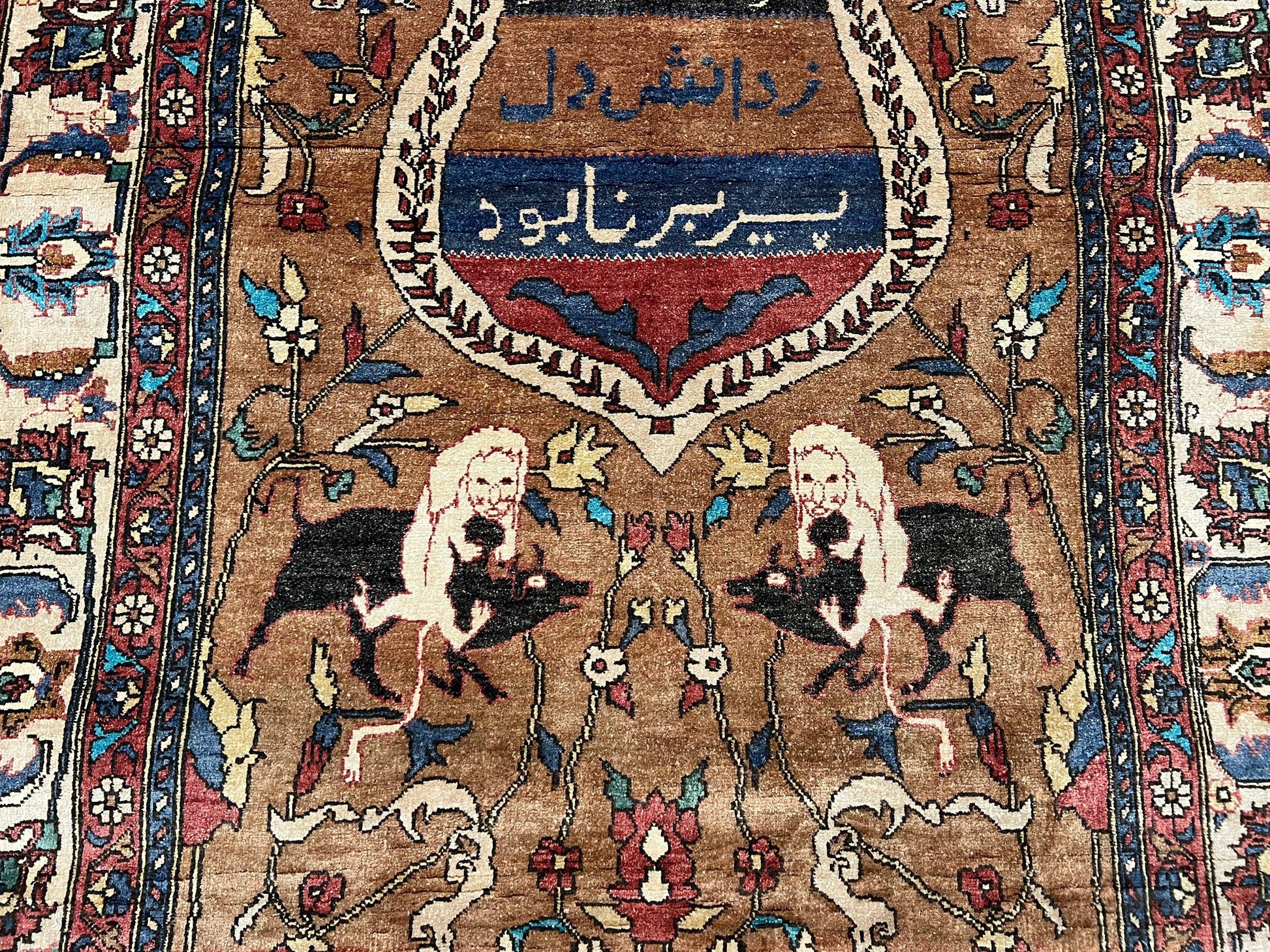 - Design: Hunting pattern with animal motifs and Persian handwritten poetry