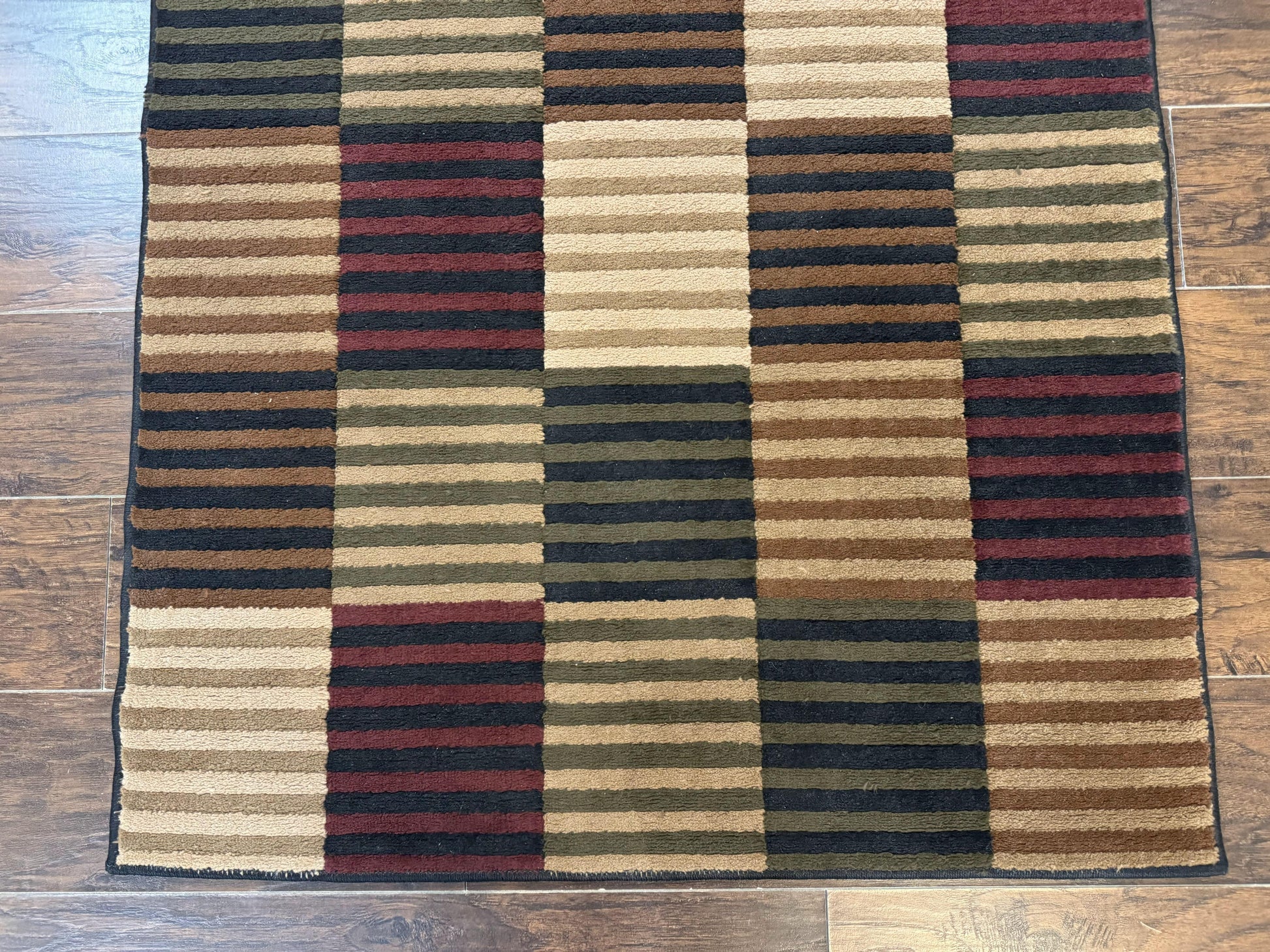 Vintage Power Loomed Wool Rug 3.6 X 5 Box Design In Brown Beige Black Tan