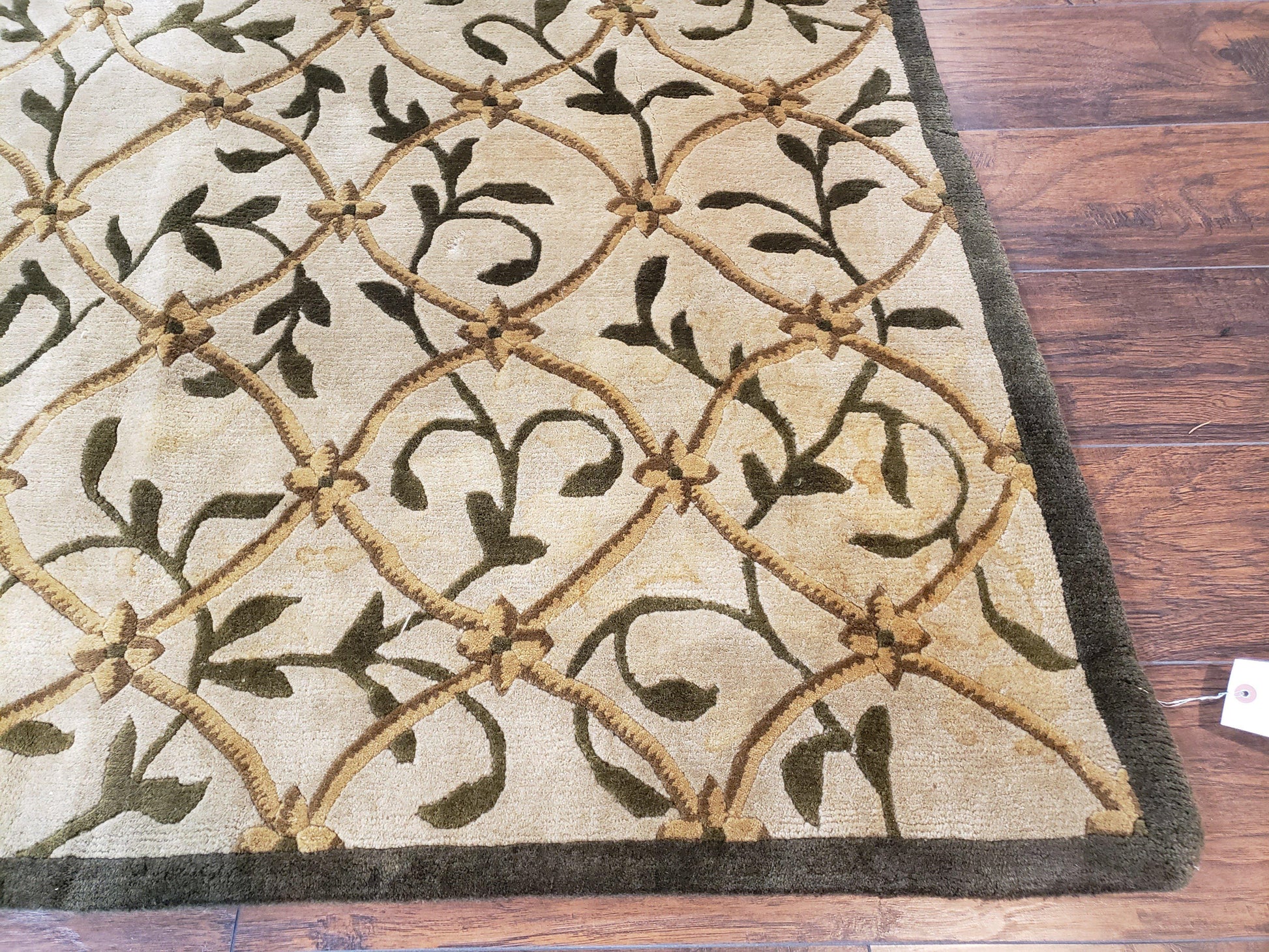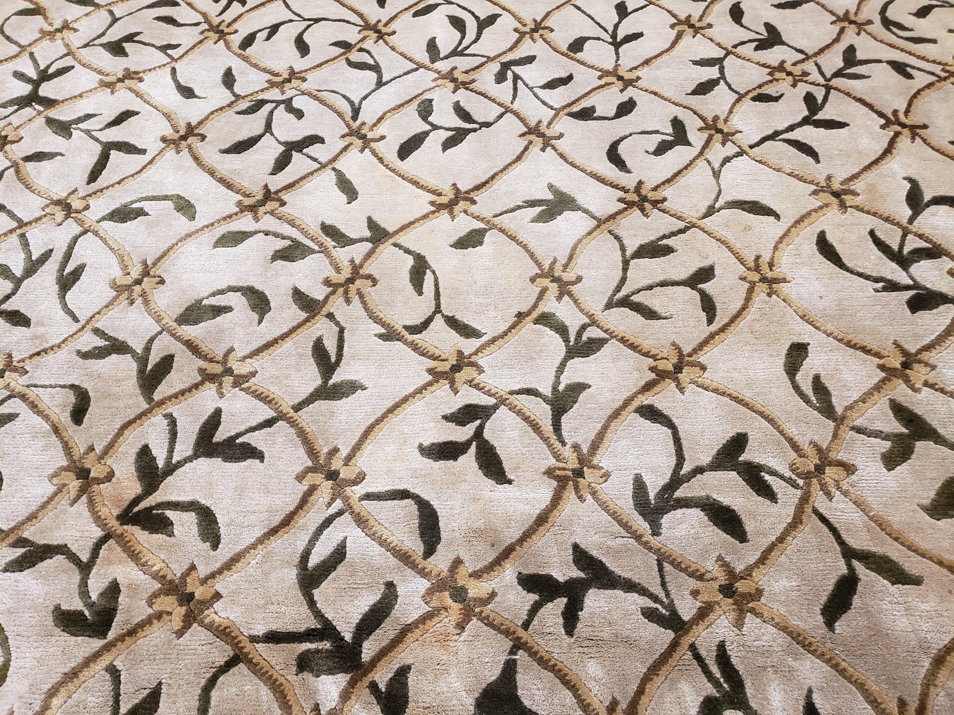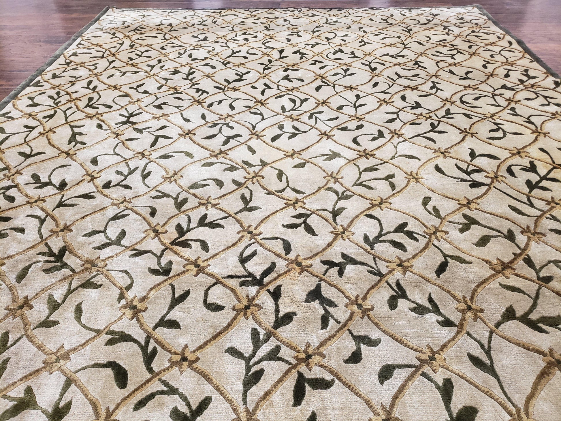 Vintage Tibetan Area Rug 9x12 Hand Knotted Wool Nepali Beige Soft Pile For Living Room
