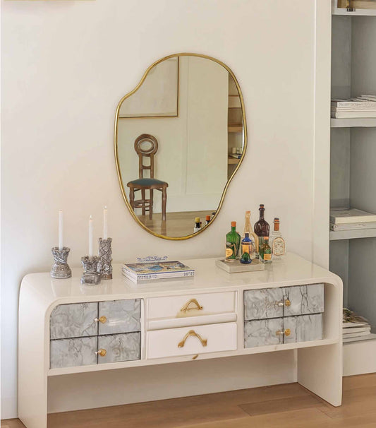Miroir asymétrique avec cadre doré - Miroir en pierre de rivière