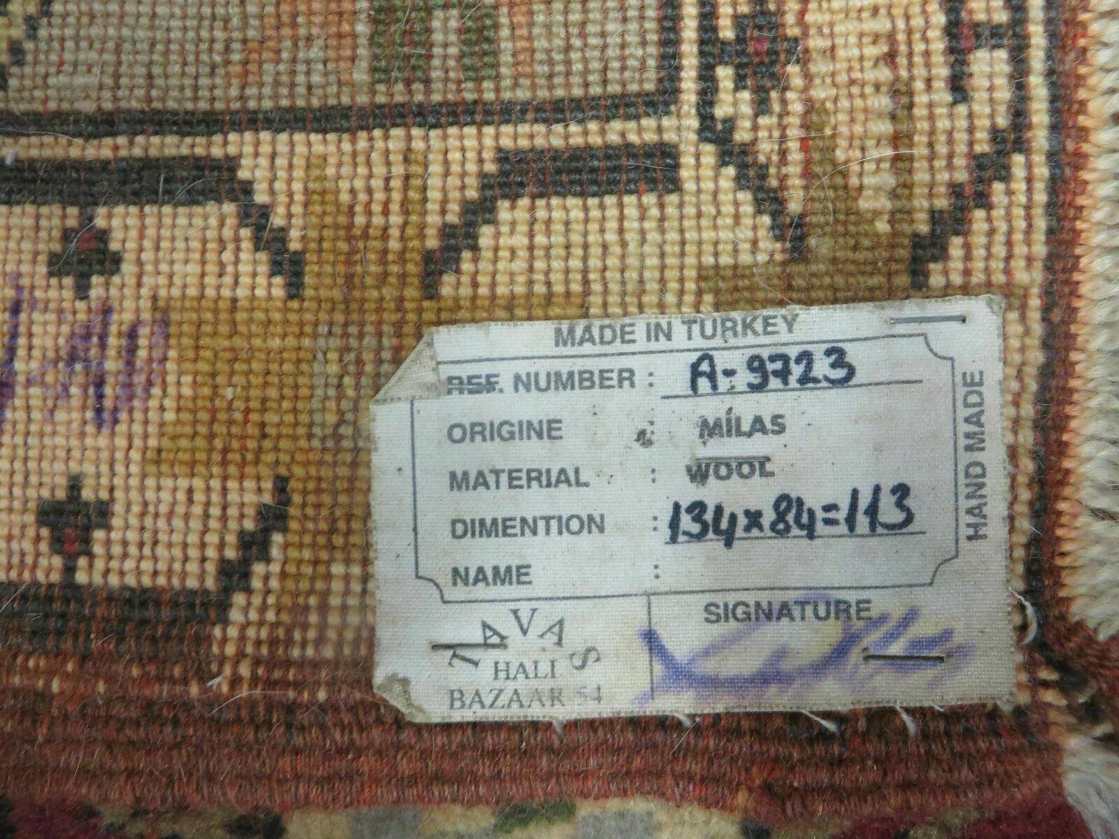 Vintage Turkish Oushak Milas Wool Rug 3x5 Handmade Accent Carpet 1970s