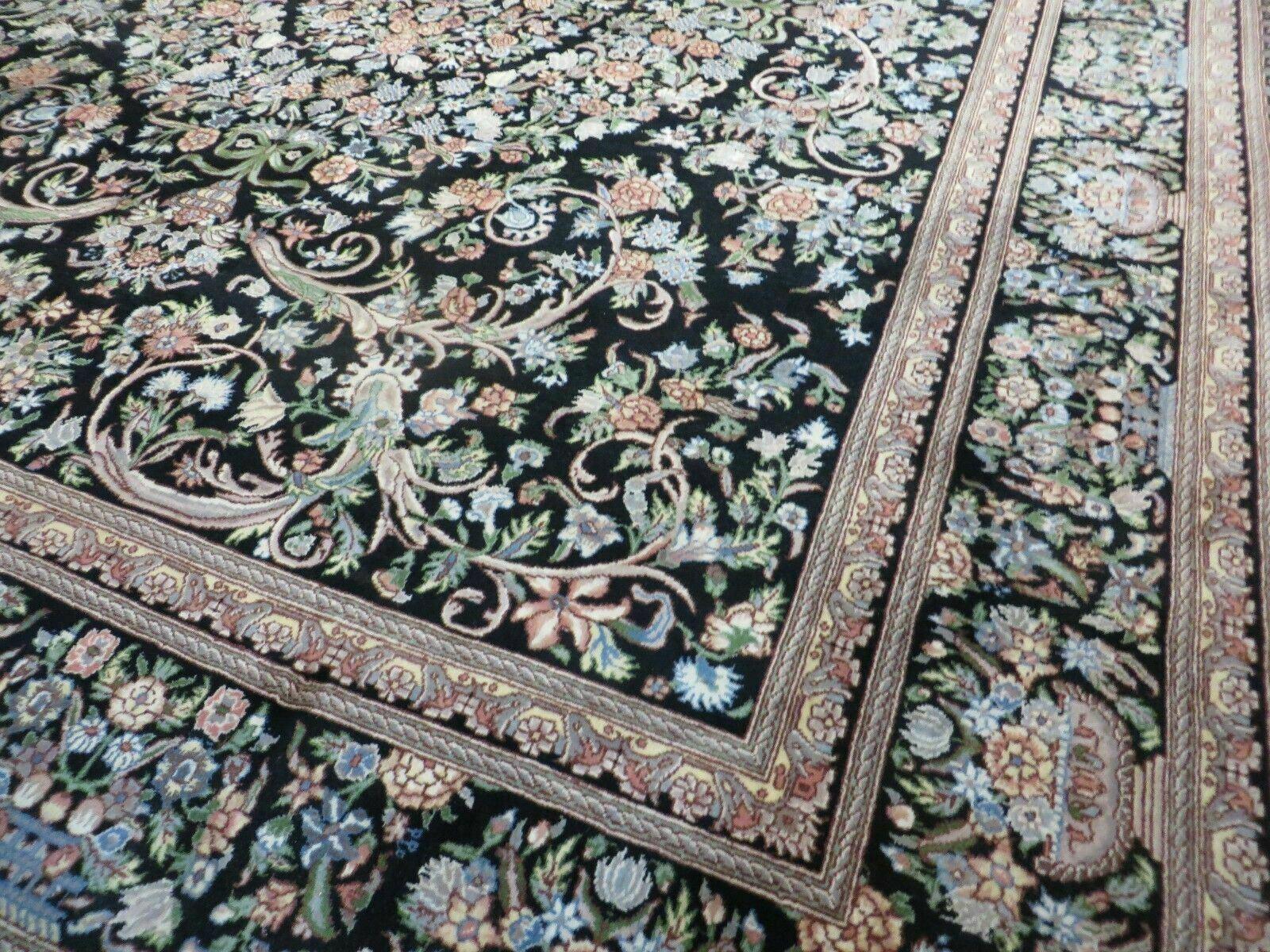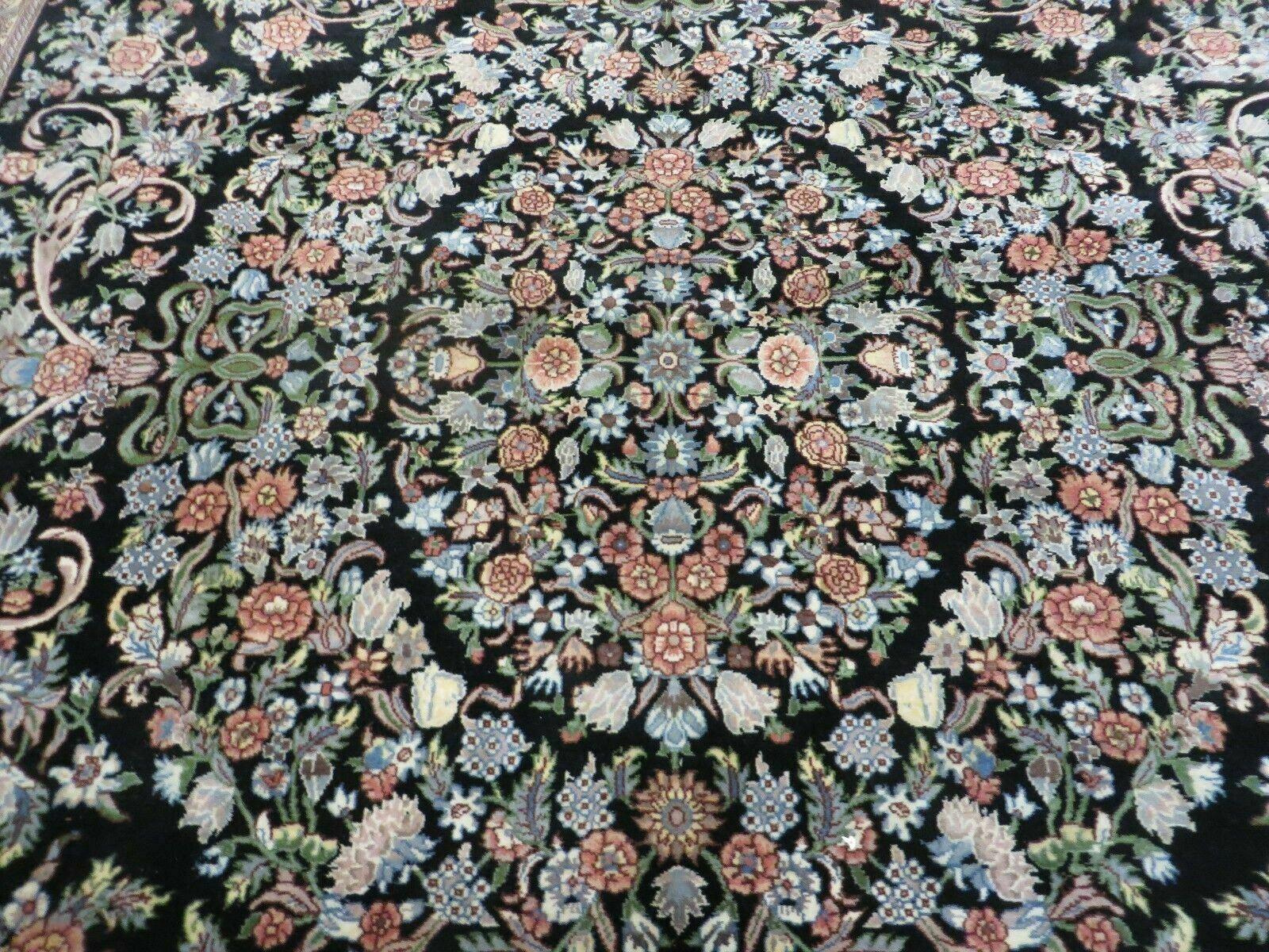 Vintage Handmade Pakistani Floral Wool Rug 8x10 Black Full Pile
