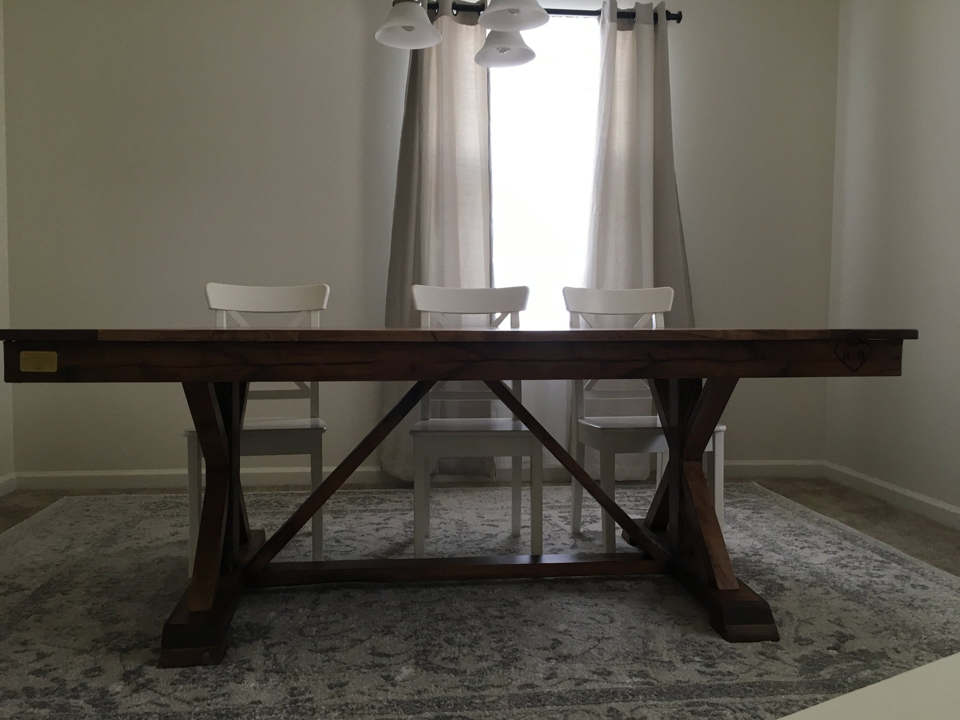 Trestle X Dining Table Farmhouse Handmade Kiln Dried Hardwood Custom Built