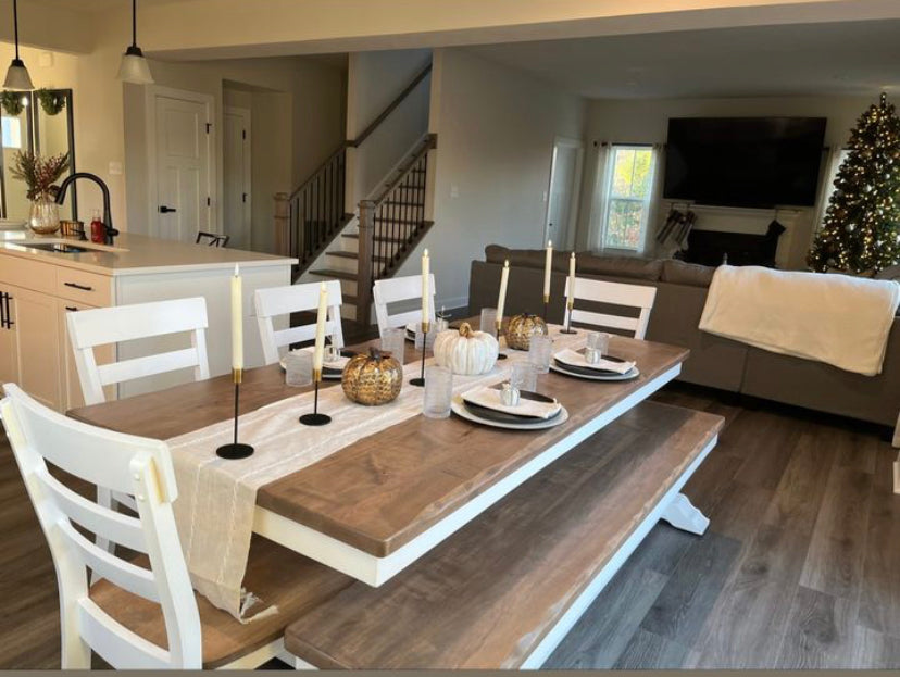 - Finish options: all stained, all painted, or painted with a stained seat