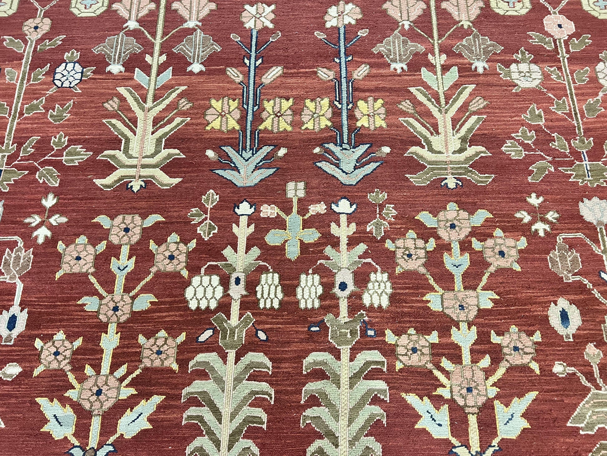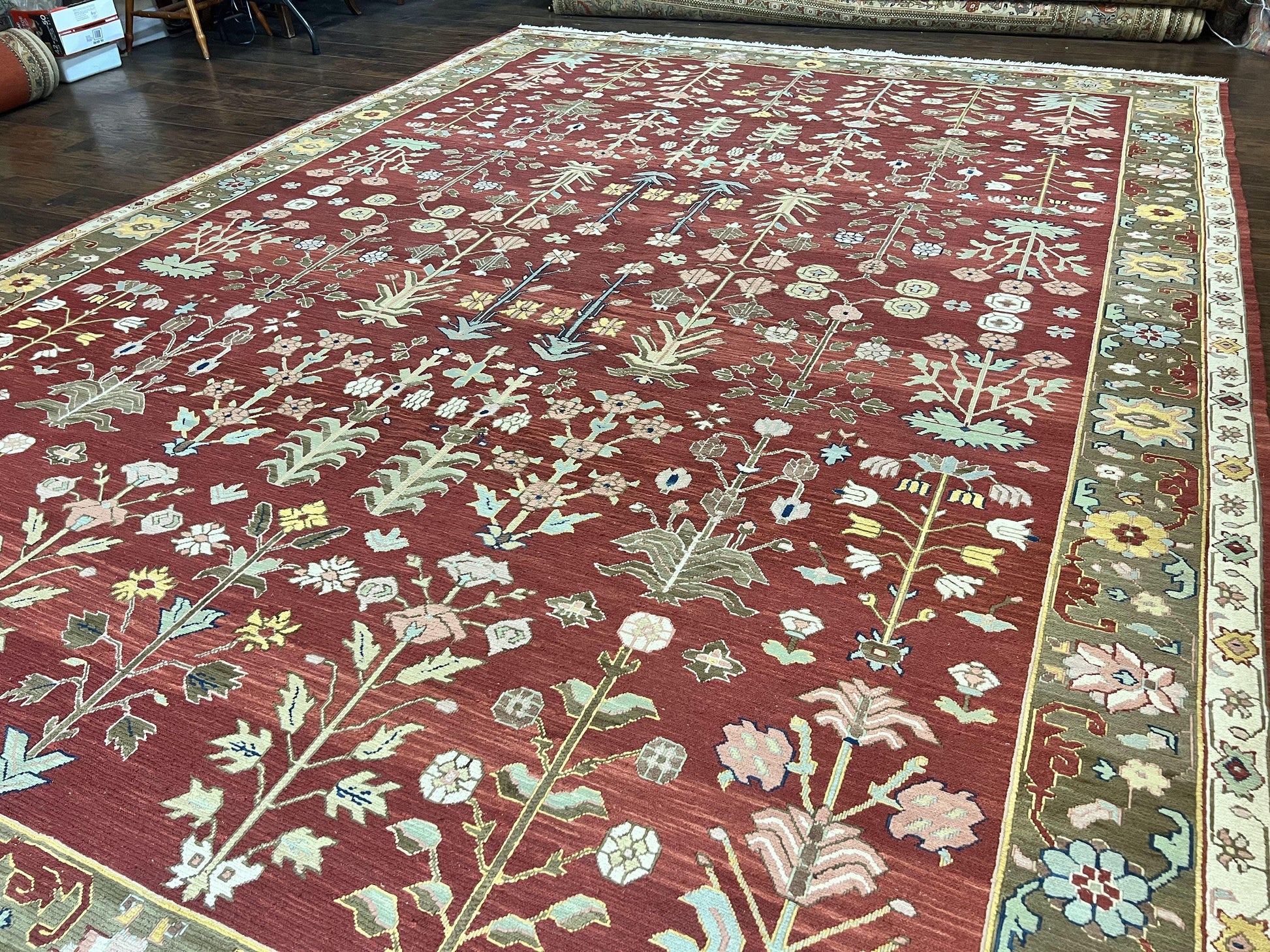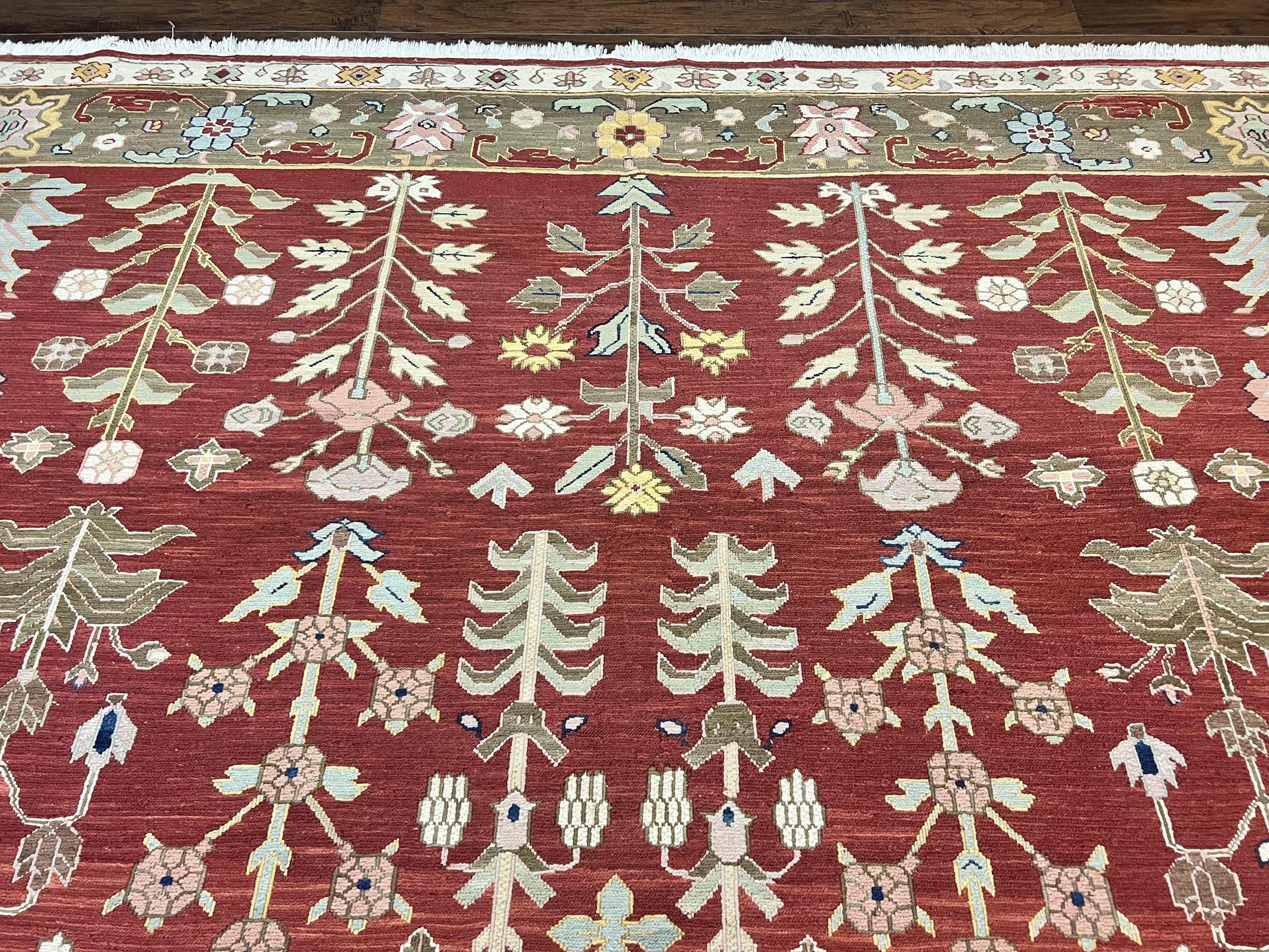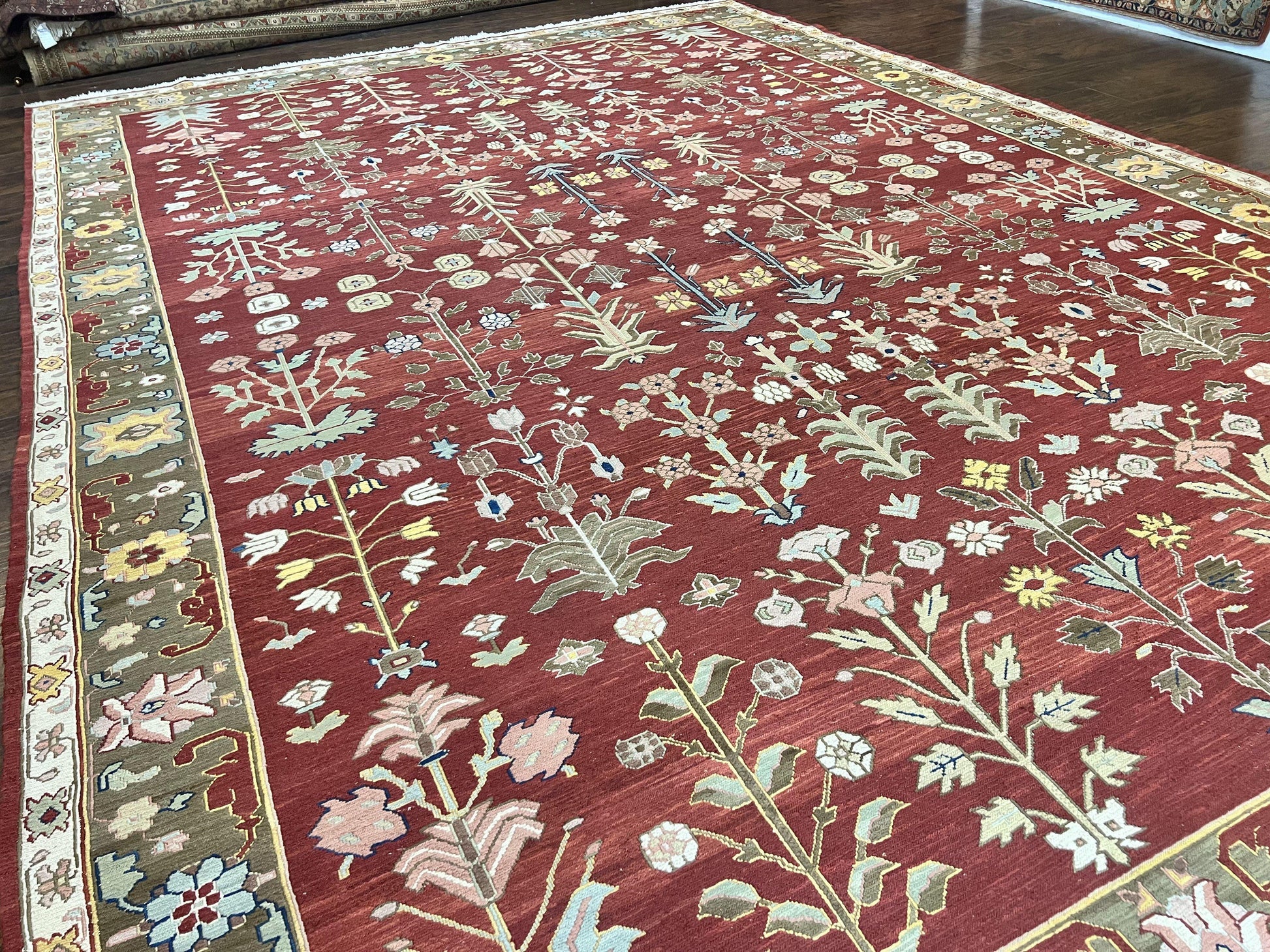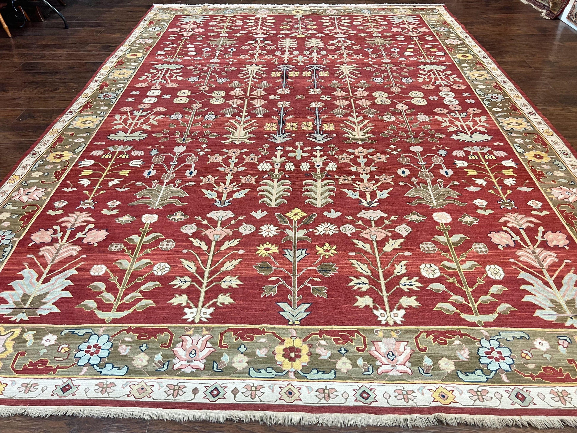 Wool Hand Knotted Indian Rug 10x14 Tree of Life Red Green Contemporary Carpet