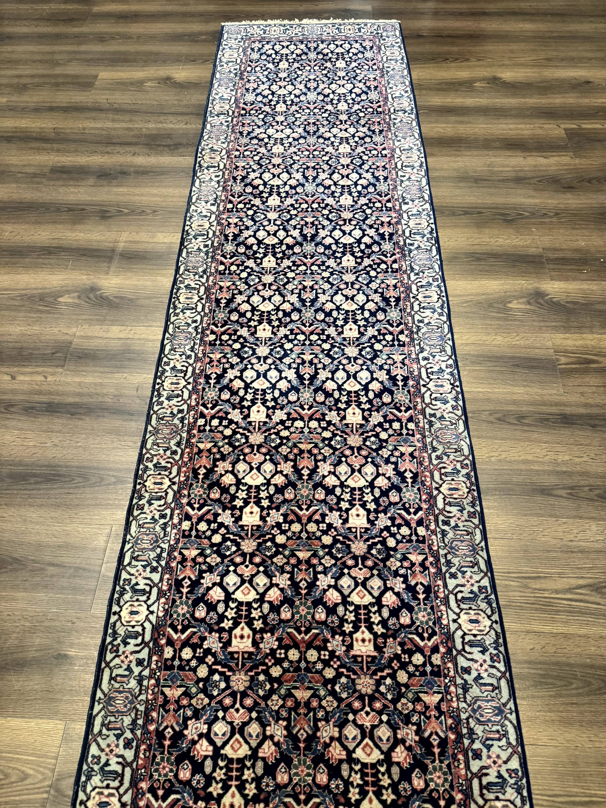Indo Persian Runner Rug 2.8x12 Navy Floral Hand Knotted Wool Fine 270 KPSI