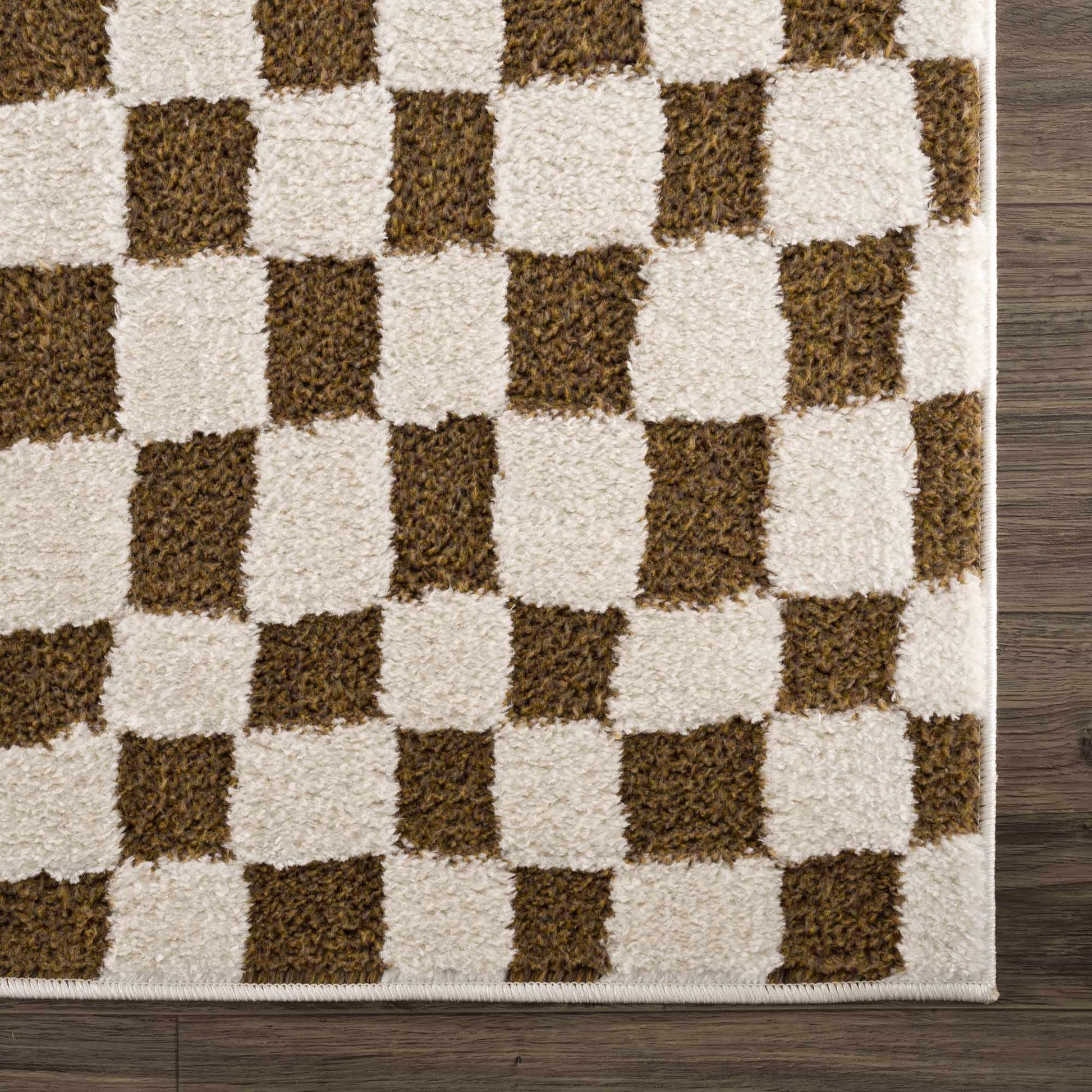 Brown Checkered Area Rug - Cozy Home Décor Accent