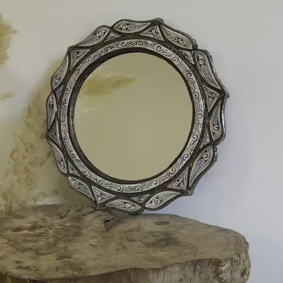 Miroir marocain - Miroir rond avec incrustations d'os blanc