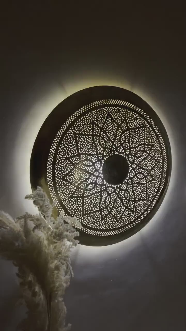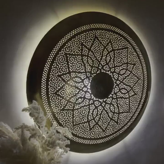L'applique murale ronde marocaine est un superbe luminaire conçu avec une attention particulière aux détails. Cette applique murale est en laiton, ce qui lui donne une belle couleur dorée et ajoute à sa durabilité.