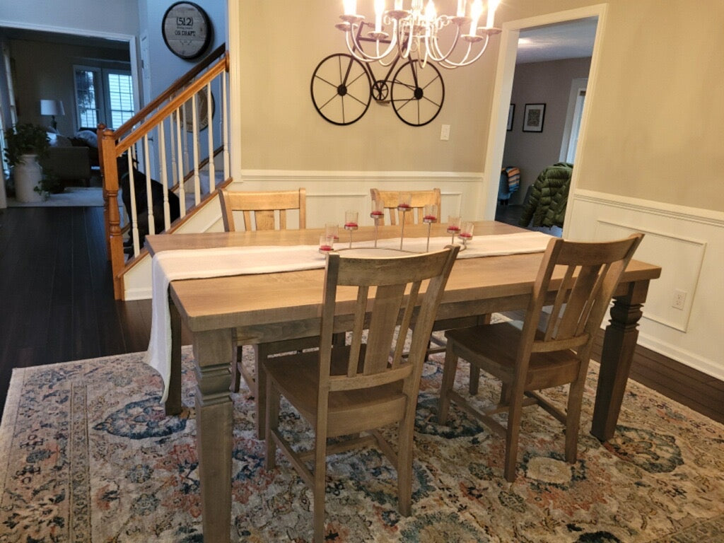 - Customizable finishes: stain to match your table, painted black with the seat stained to match, or painted white with the seat stained to match