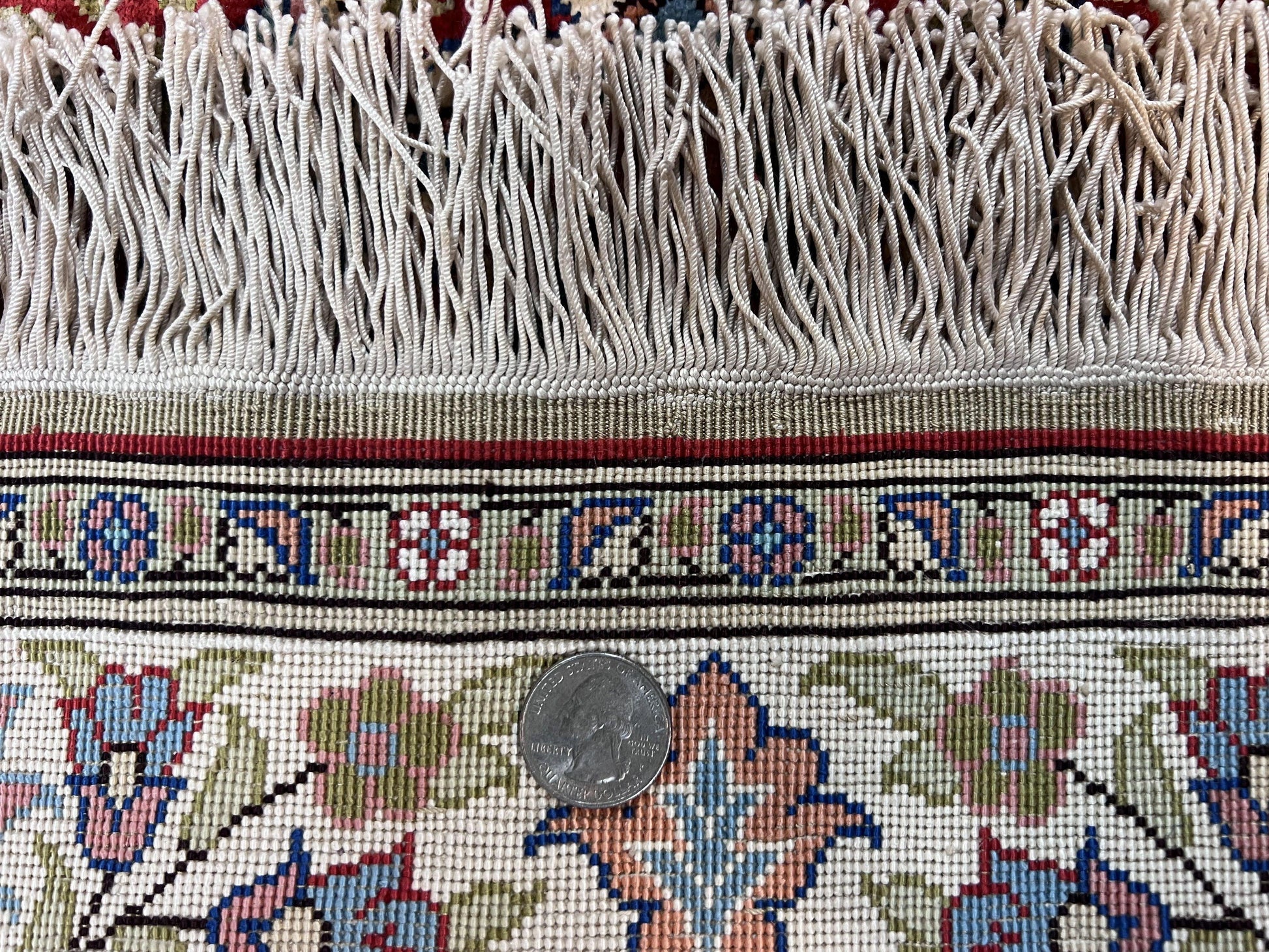 | Condition/Notes | Silk rug in very good condition. Silk pile on silk foundation. Nice colors. 250 KPSI. Free of stains, odors, discolorations, tears, etc. Good pile and fringes. Recently cleaned and ready to be enjoyed in your space. |
