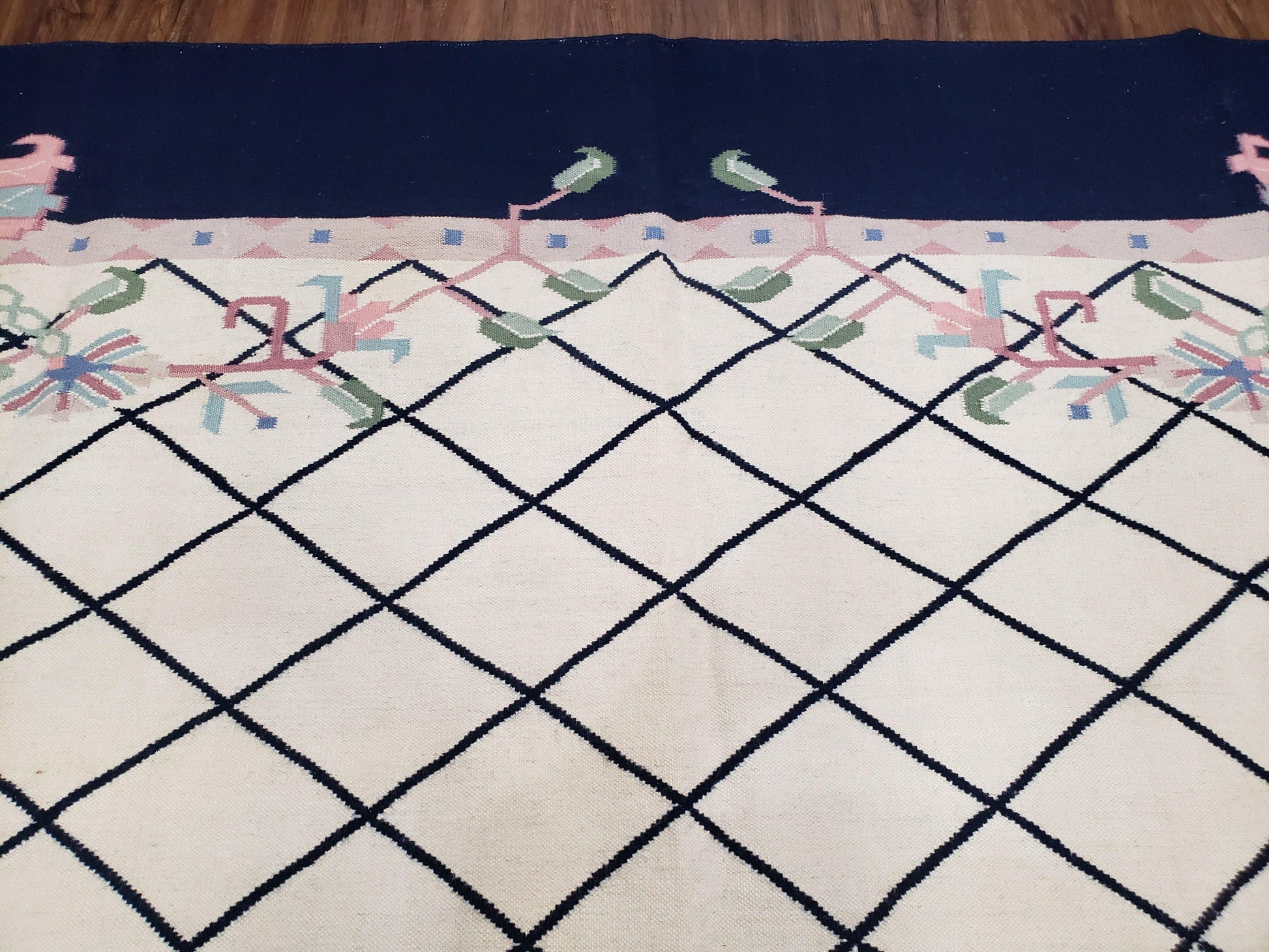 | Condition/Notes | A beautiful vintage Indian Dhurrie rug in very good condition. Free of stains, odors, discolorations, tears, etc. Recently cleaned and ready to be enjoyed in your space. |