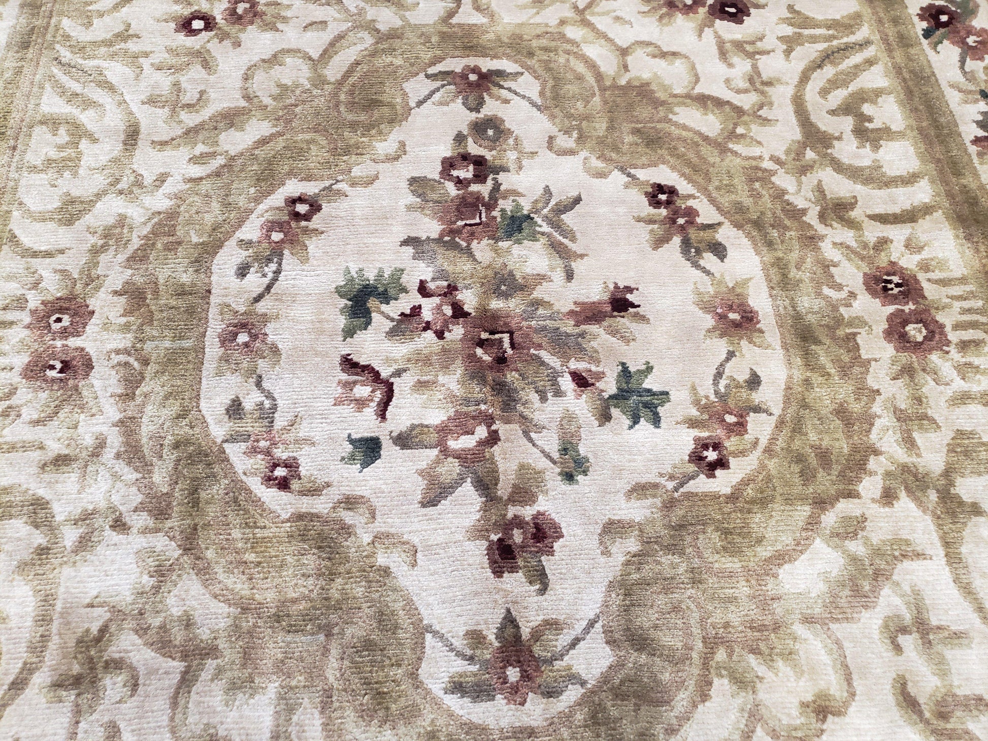 - Construction: Handmade, hand-knotted Nepalese Aubusson technique