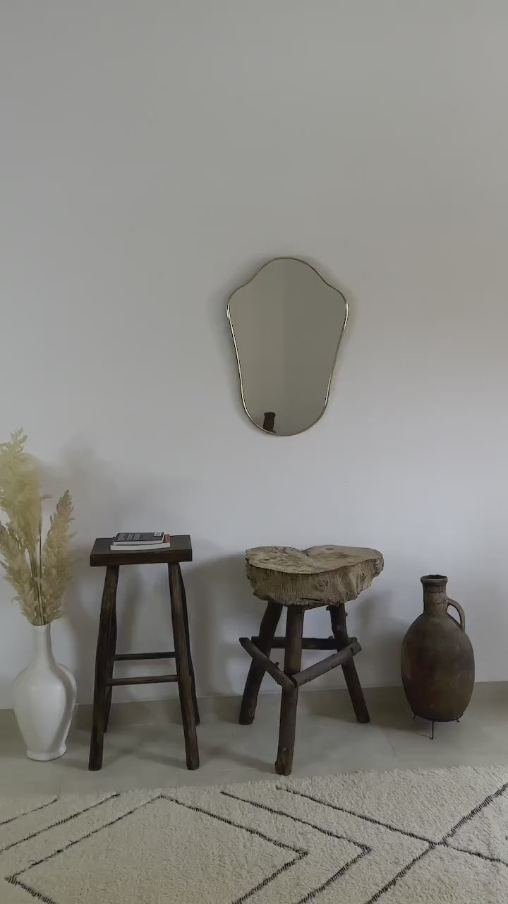 Introducing the Italian Shield Brass Frame Mirror, a stunning fusion of classical elegance and meticulous craftsmanship. Each mirror is handmade, ensuring exceptional quality and a unique artisanal touch. The frame, crafted from premium unlacquered brass, exudes sophistication and timeless appeal, developing a rich patina over time that enhances its vintage charm.