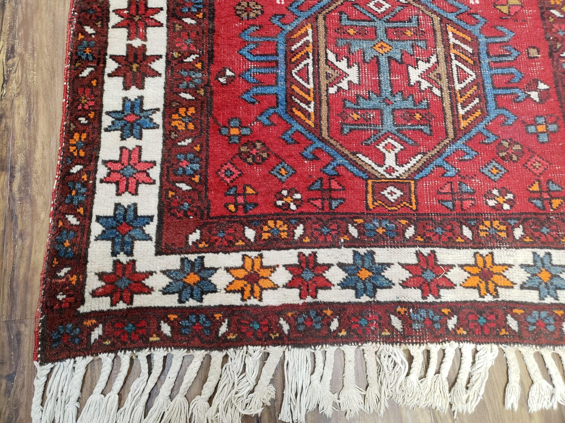 Antique Persian Heriz Karajeh Runner Rug Hand Knotted Wool Red 3 Ft 3 In By 10 Ft 11 In