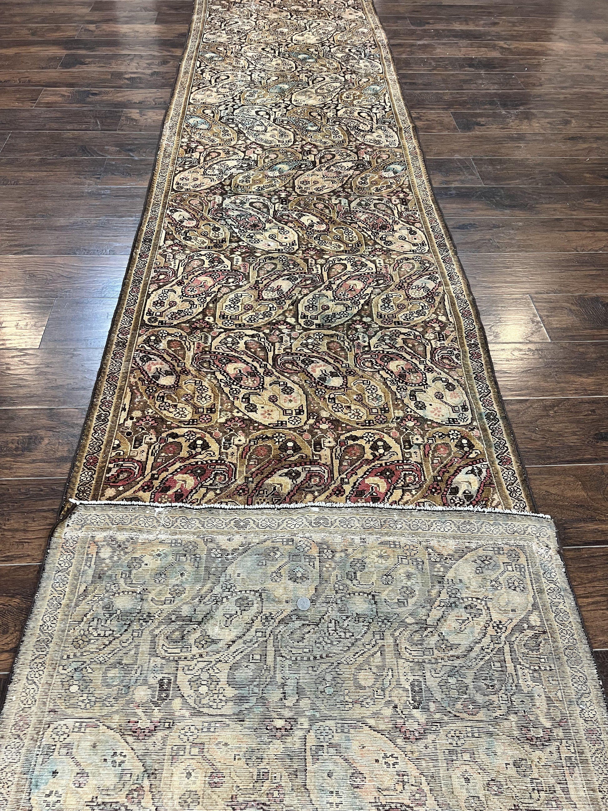 Antique Persian Malayer Runner Rug 3x16 Hand Knotted Wool Paisley Boteh Design