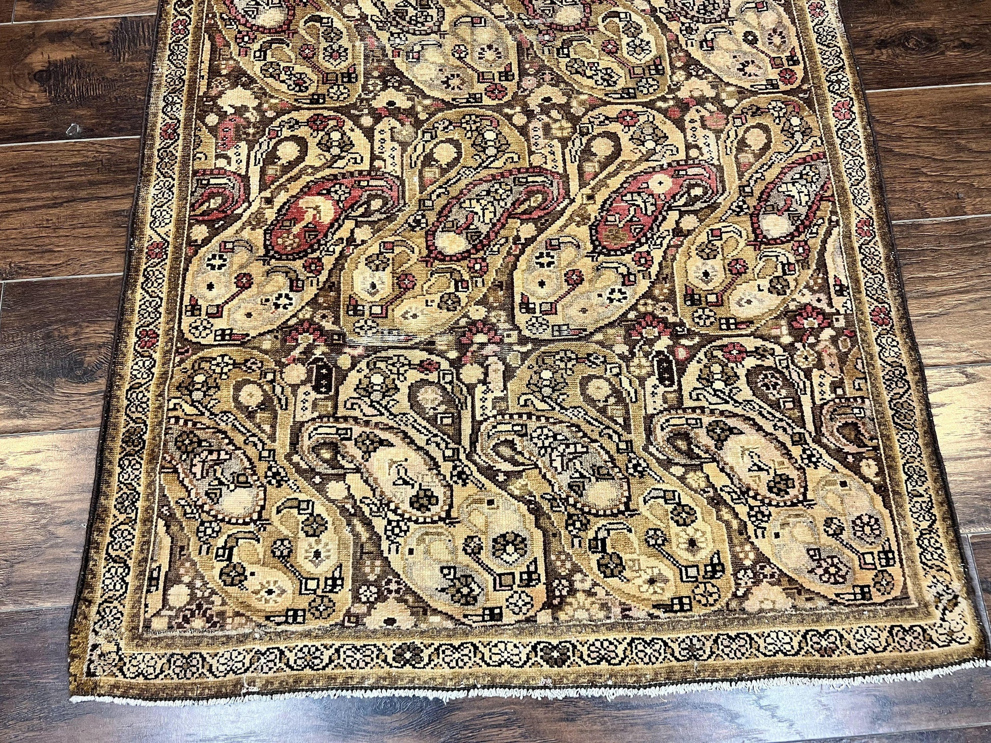 This antique rug adds warmth, texture, and a sense of history to your space. The durable wool and hand-knotted craftsmanship deliver lasting beauty, while the elongated runner format creates graceful transitions along hallways or living areas. The multicolor Boteh Paisley motif offers timeless appeal that pairs well with traditional or eclectic décor. Recently cleaned and in very good condition, it’s ready to elevate your space with minimal upkeep.
