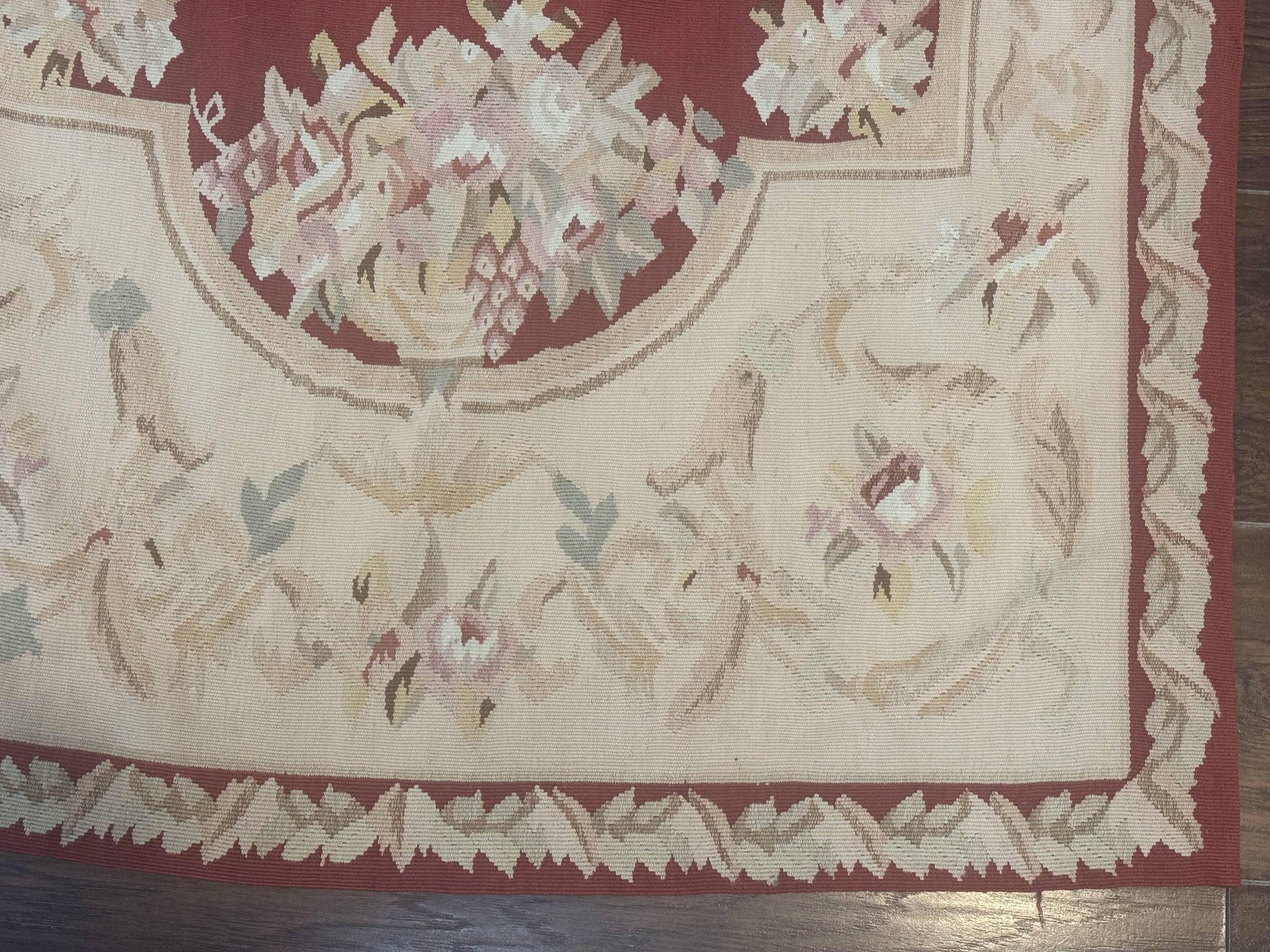 Aubusson Runner Rug 3x10 Handmade Wool European Design in Red and Beige
