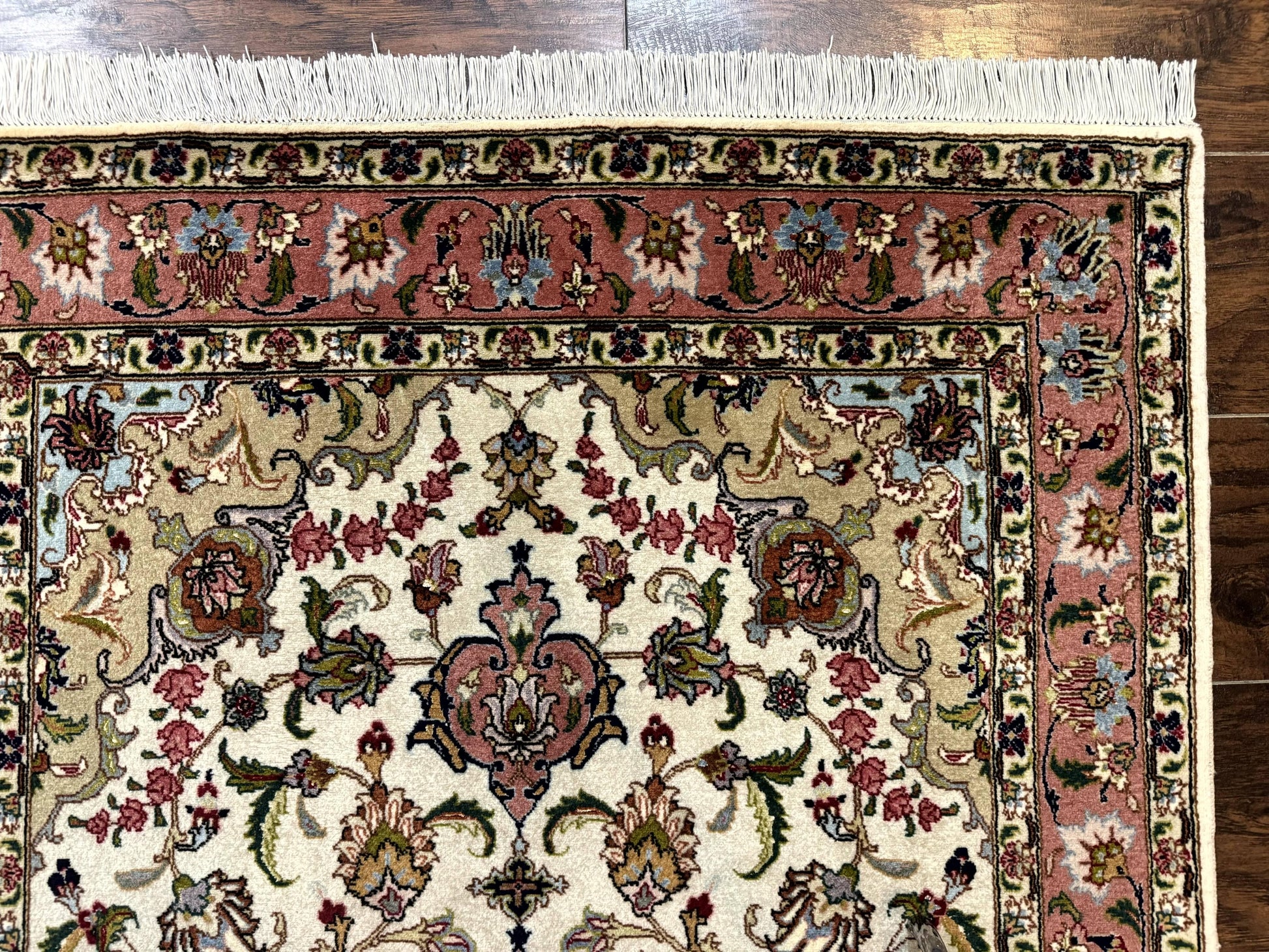 Fine Persian Tabriz Rug 3x5 Hand Knotted Wool Floral Medallion Ivory Salmon 340 KPSI