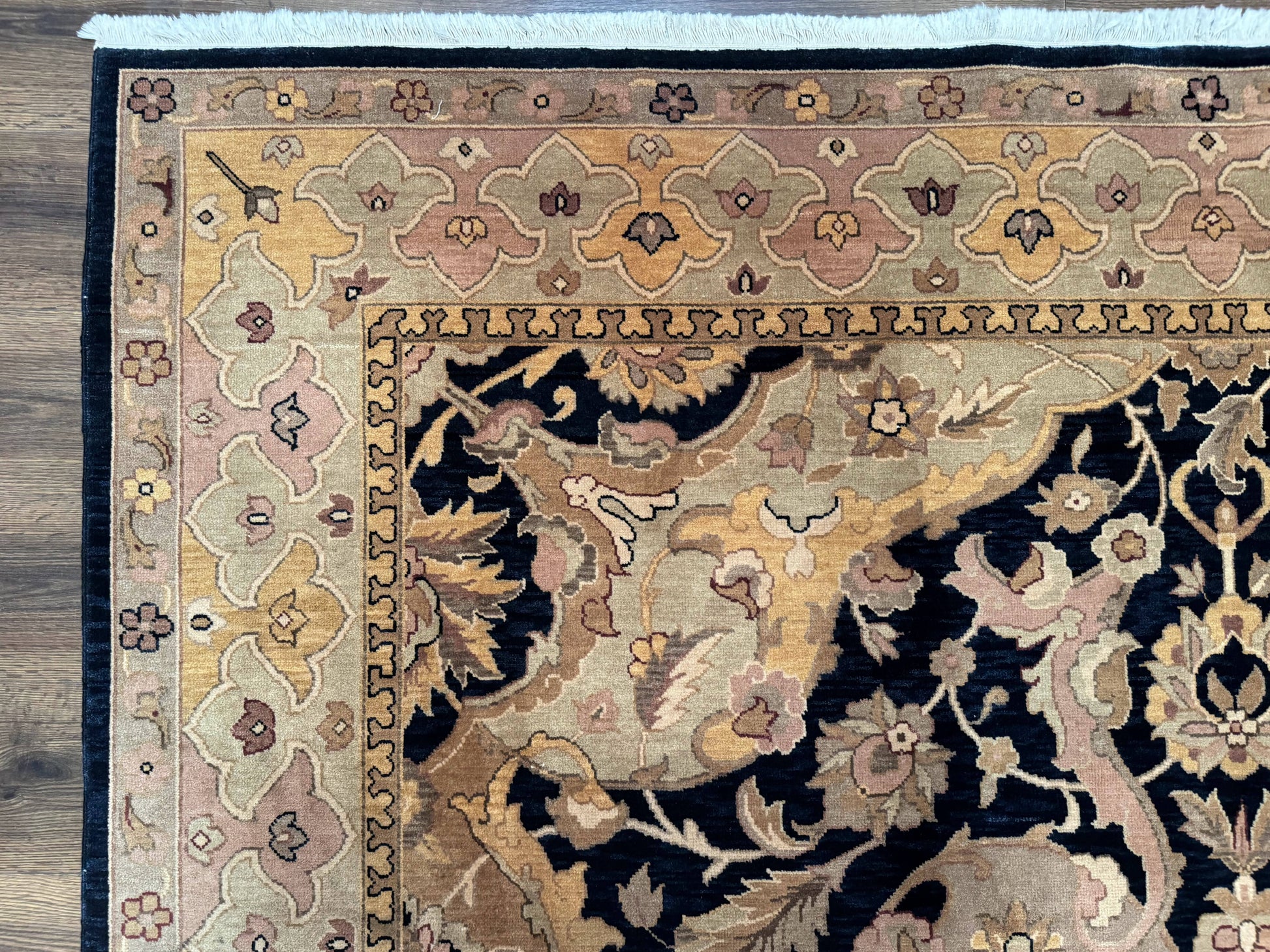 Handmade Wool Rug 8x10 Traditional Oriental Black and Beige Nourison