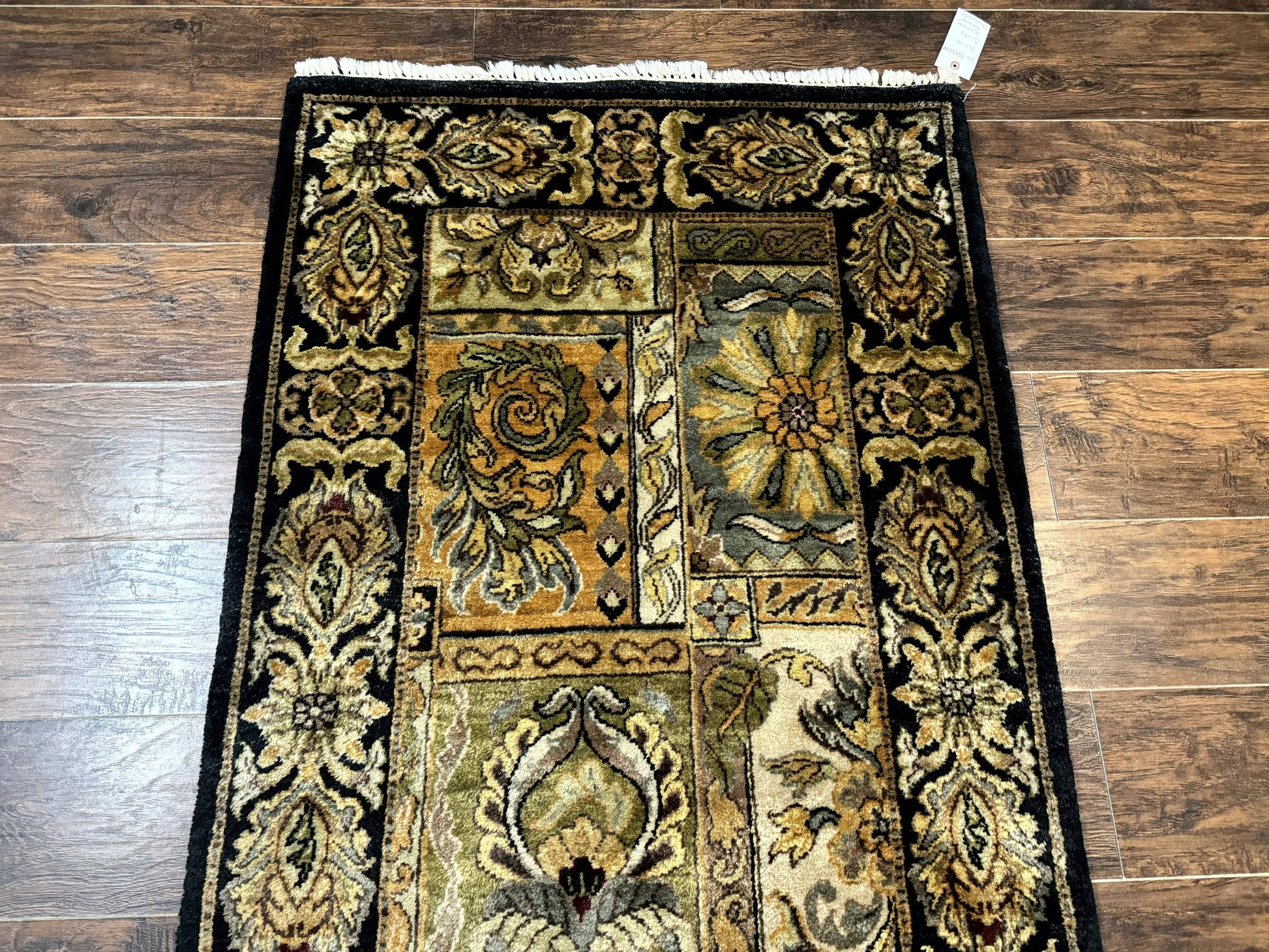 Indian Runner Rug 3x14 Panel Design Hand Knotted Wool Oriental Carpet For Hallway