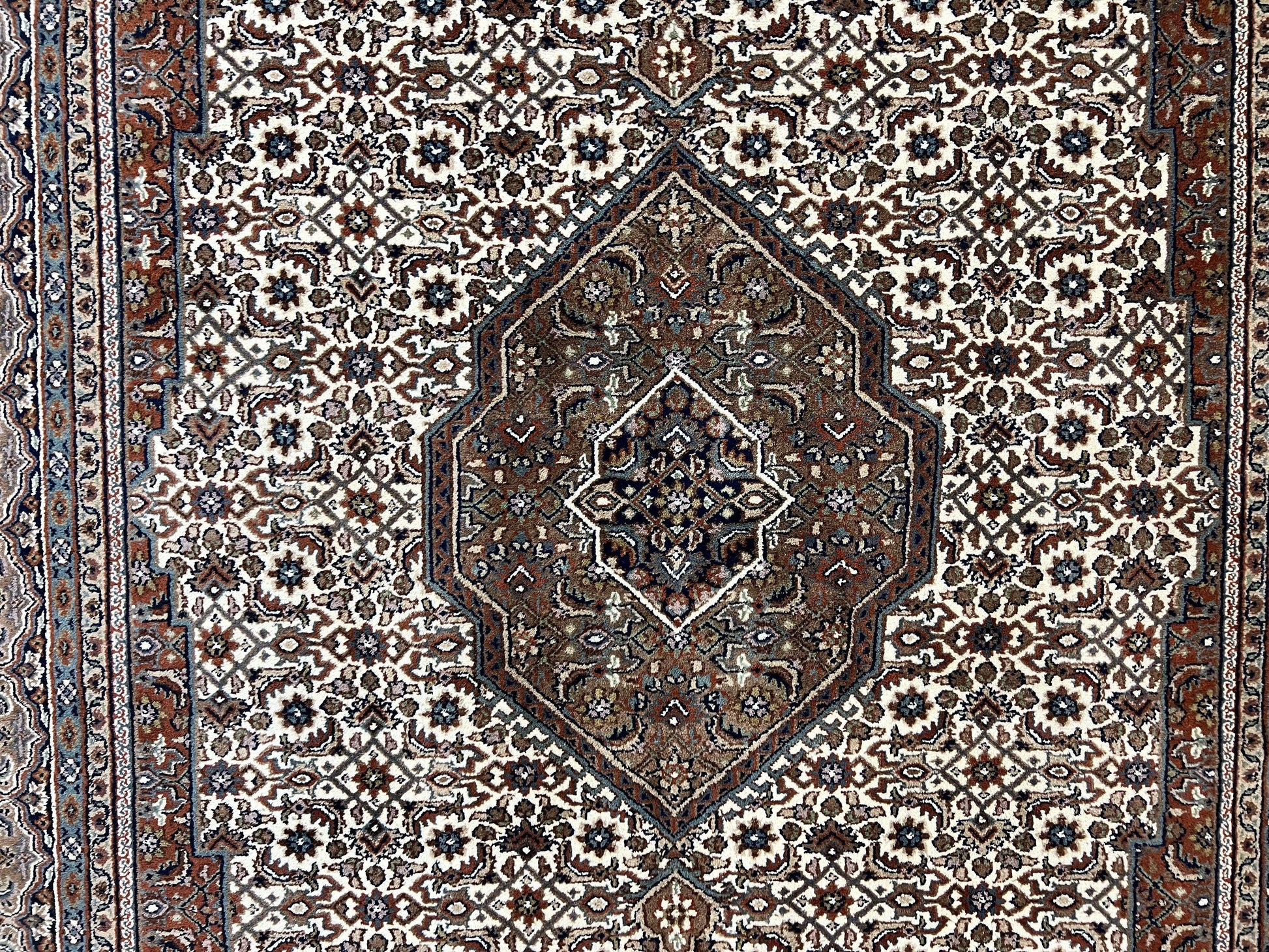 - Design: Medallion centerpiece with Indo Bidjar/Herati Bidjar motifs