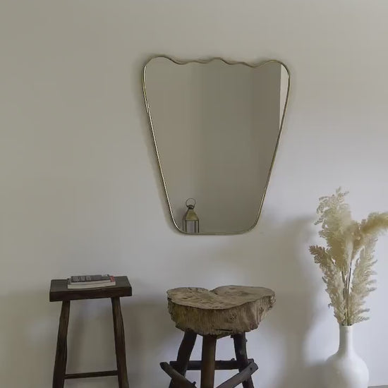 Italian Wavy Brass Mirror - Antique Metal Frame Mirror