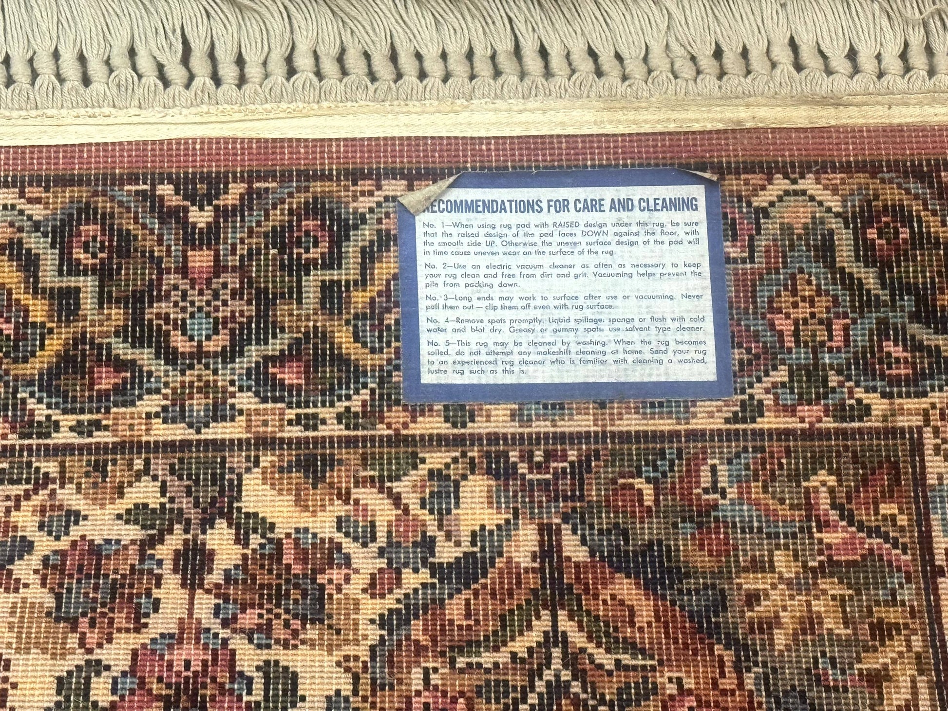 | Condition/Notes | A beautiful vintage Karastan rug in very good condition. Free of stains, odors, discolorations, tears, etc. Good pile & fringes. Original Karastan label is attached. Recently cleaned and ready to be enjoyed in your space. |