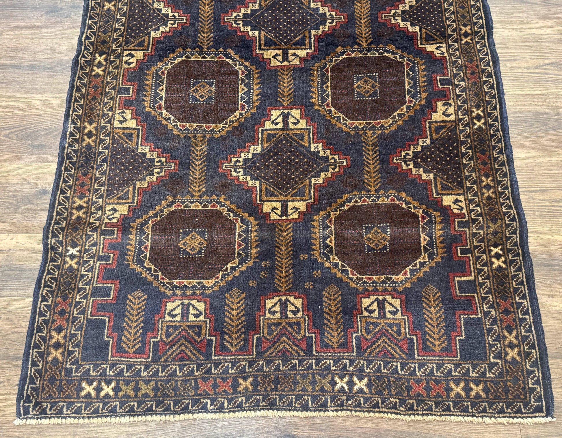 Afghan Balouch Rug Navy Blue 4x6 Handwoven Handmade Contemporary Wool Accent