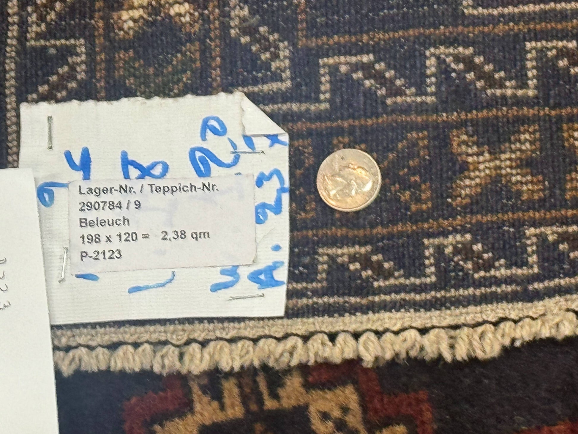 The Navy Blue Afghan Balouch Rug is a handmade, hand-knotted wool rug that brings artisanal charm and durable warmth to any room. Ideal for contemporary spaces seeking a heritage-inspired centerpiece, this new Balouch rug elevates floors with rich navy and warm light tan accents.