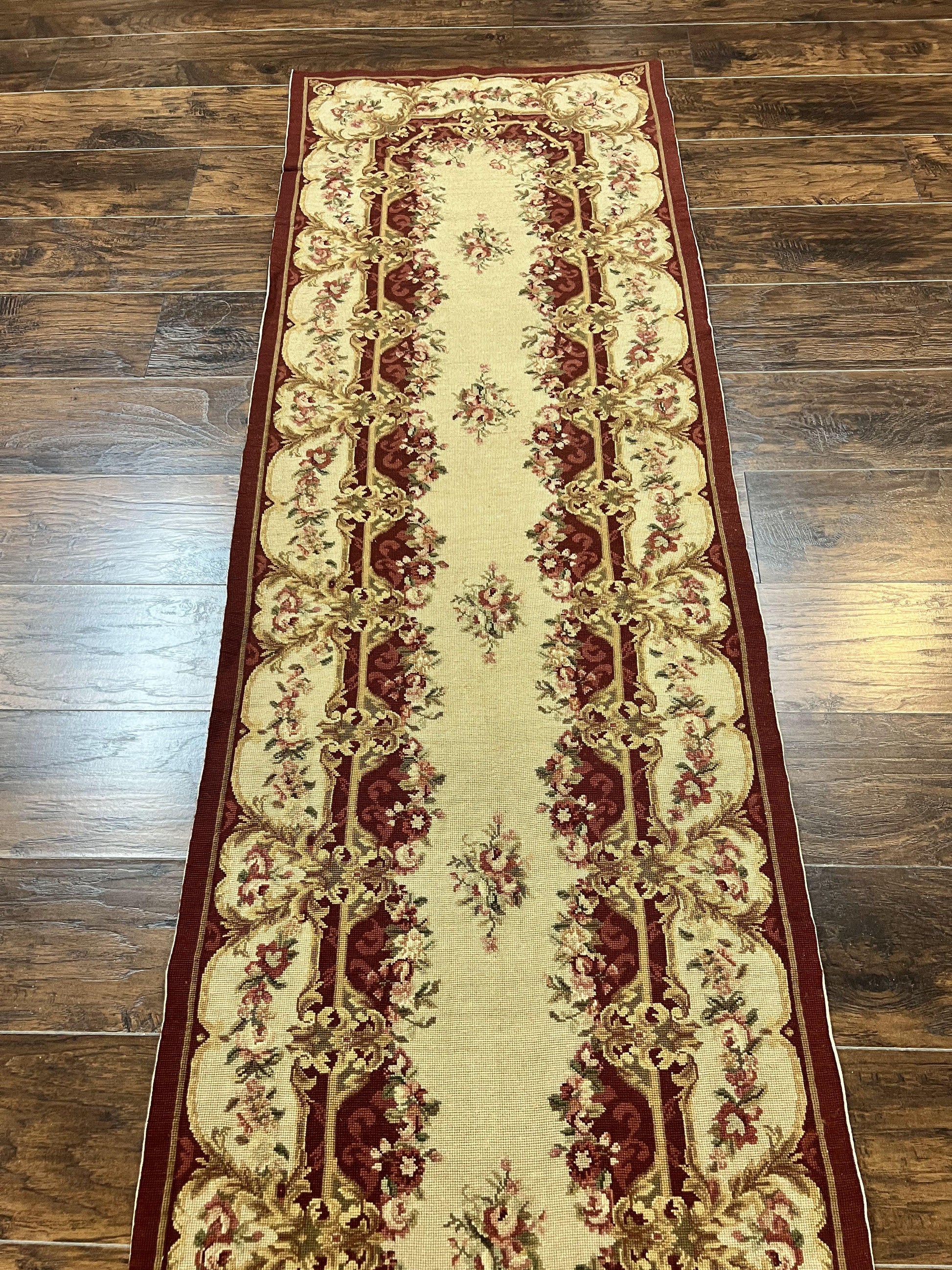 Needlepoint Runner Rug Tan Flatweave Hallway Rug Aubusson European Design