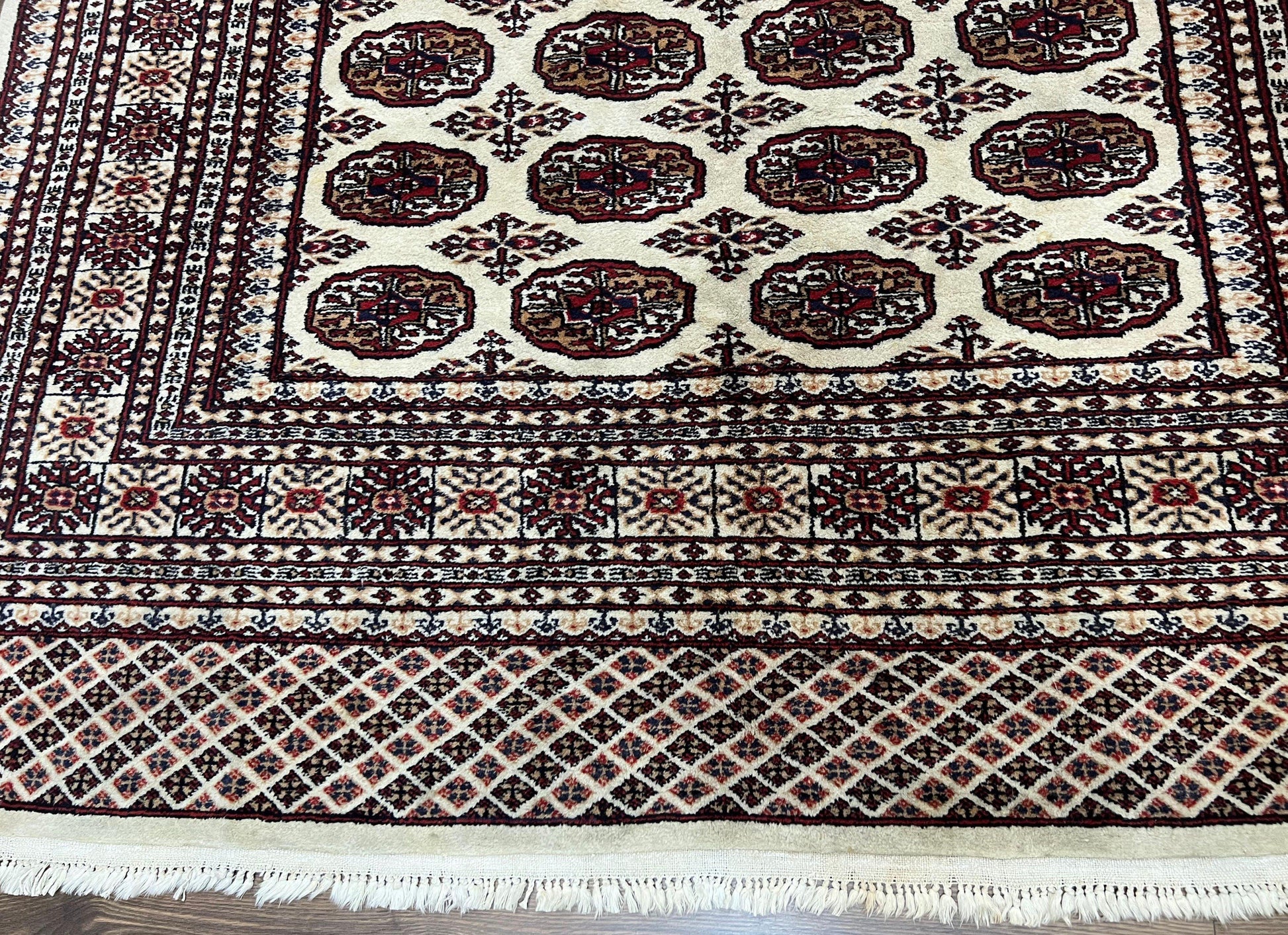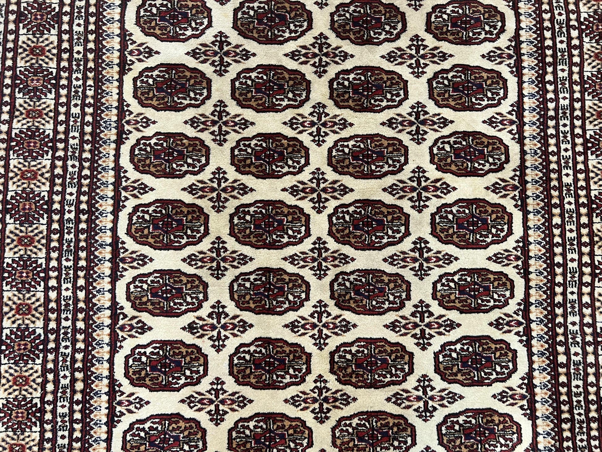| Condition/Notes | A beautiful vintage Pakistani Turkoman rug in very good condition. Free of stains, odors, discolorations, tears, etc. Good pile & fringes. Recently cleaned and ready to be enjoyed in your space. |