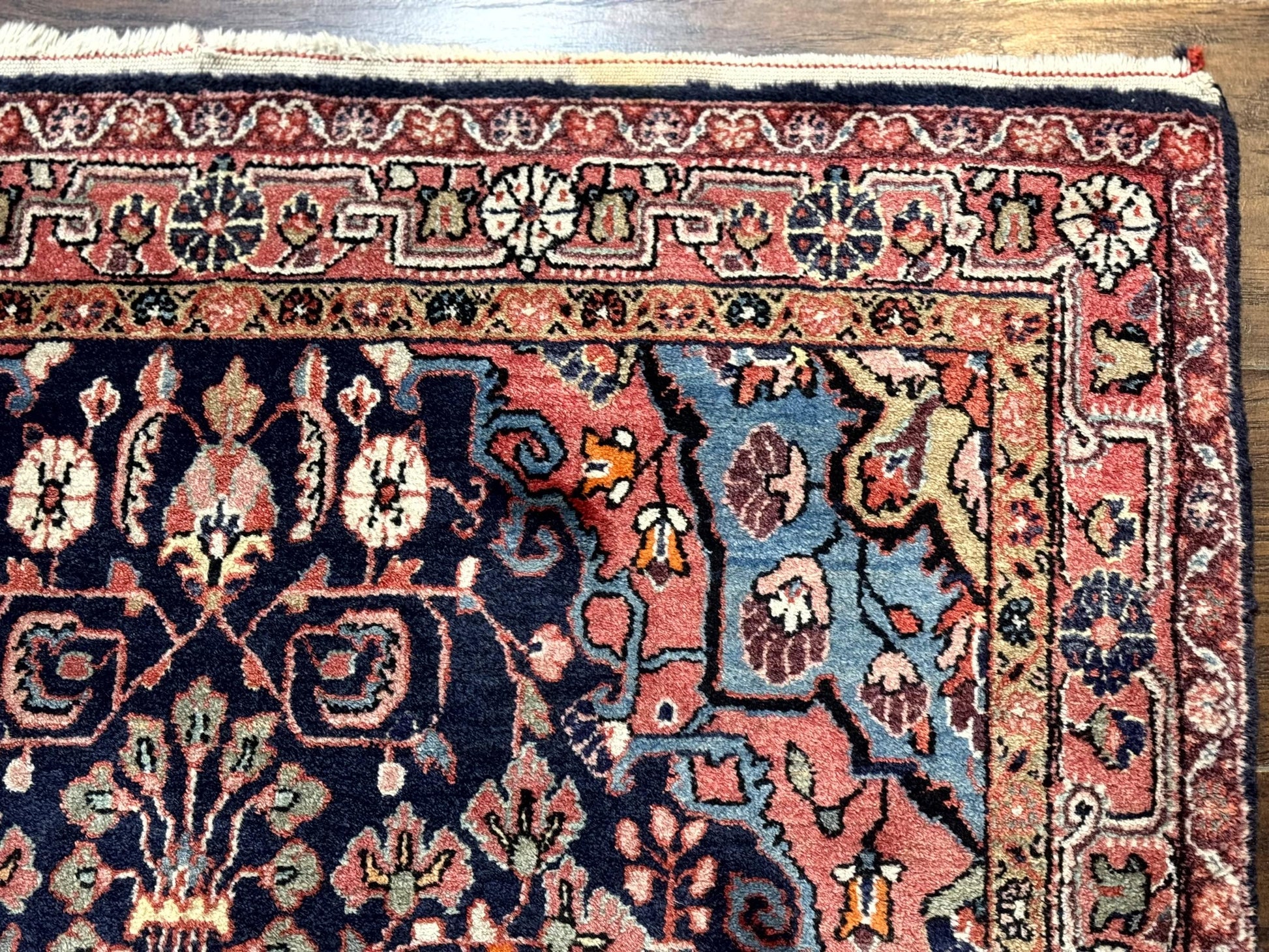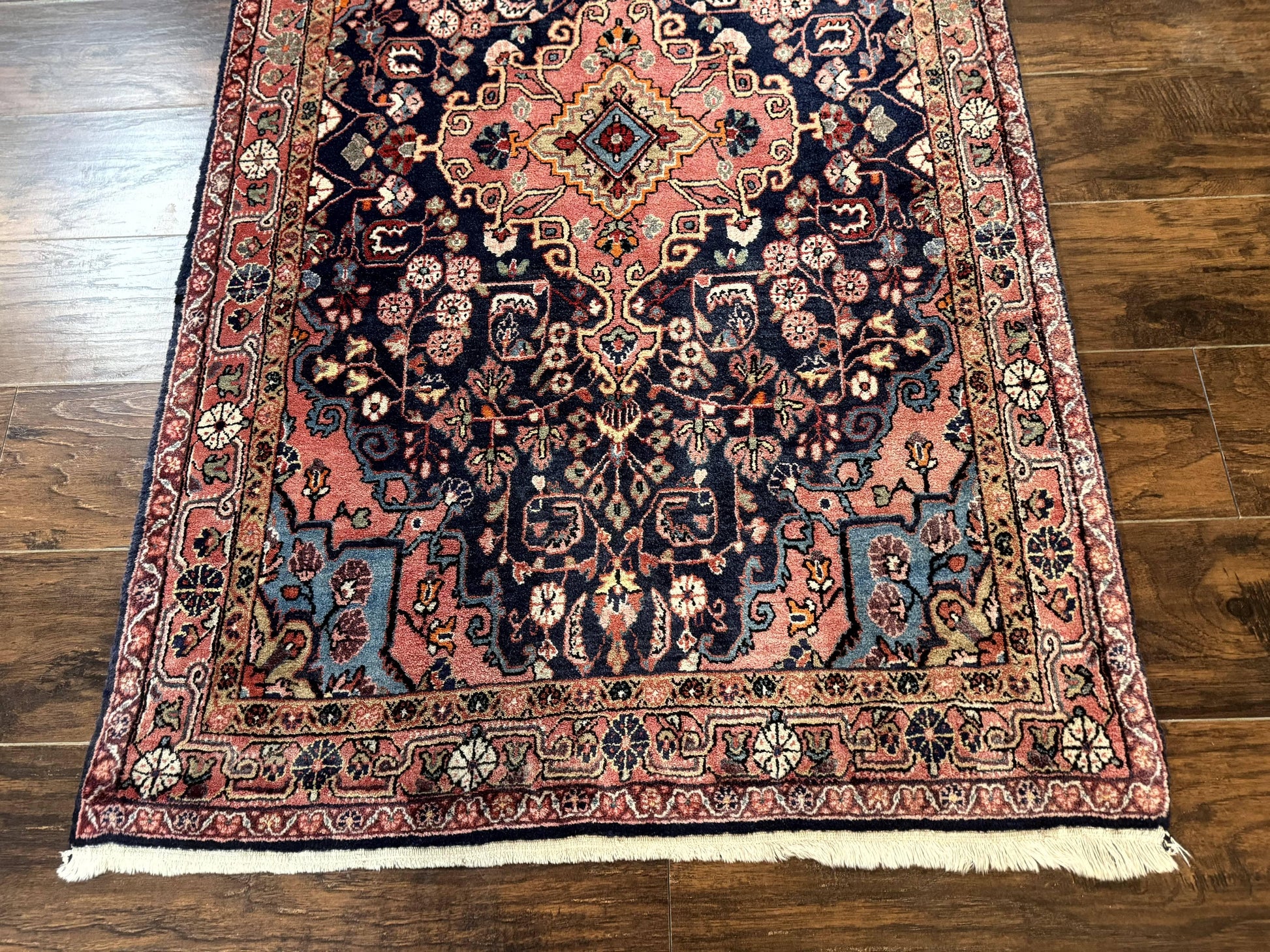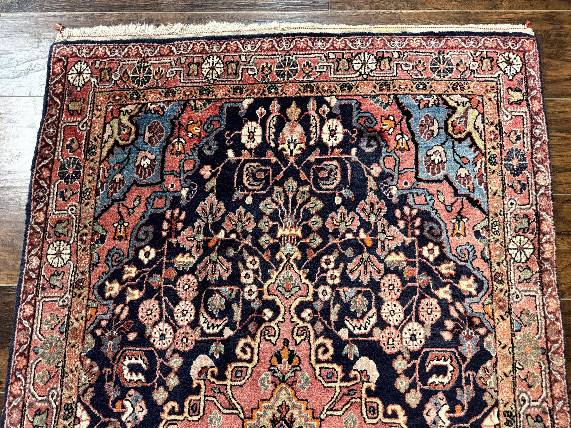 Sarouk Persian Rug Jozan 3x5 Navy Blue And Coral Medallion Handmade Wool